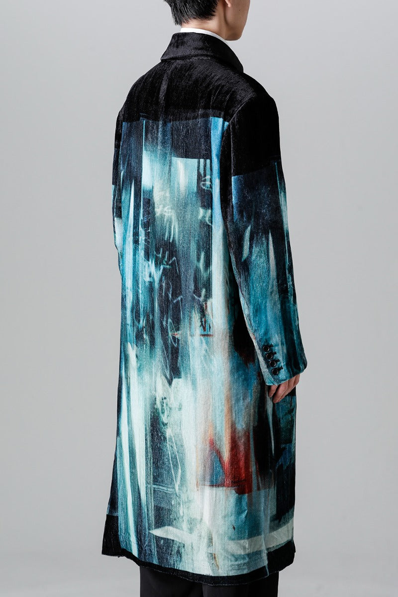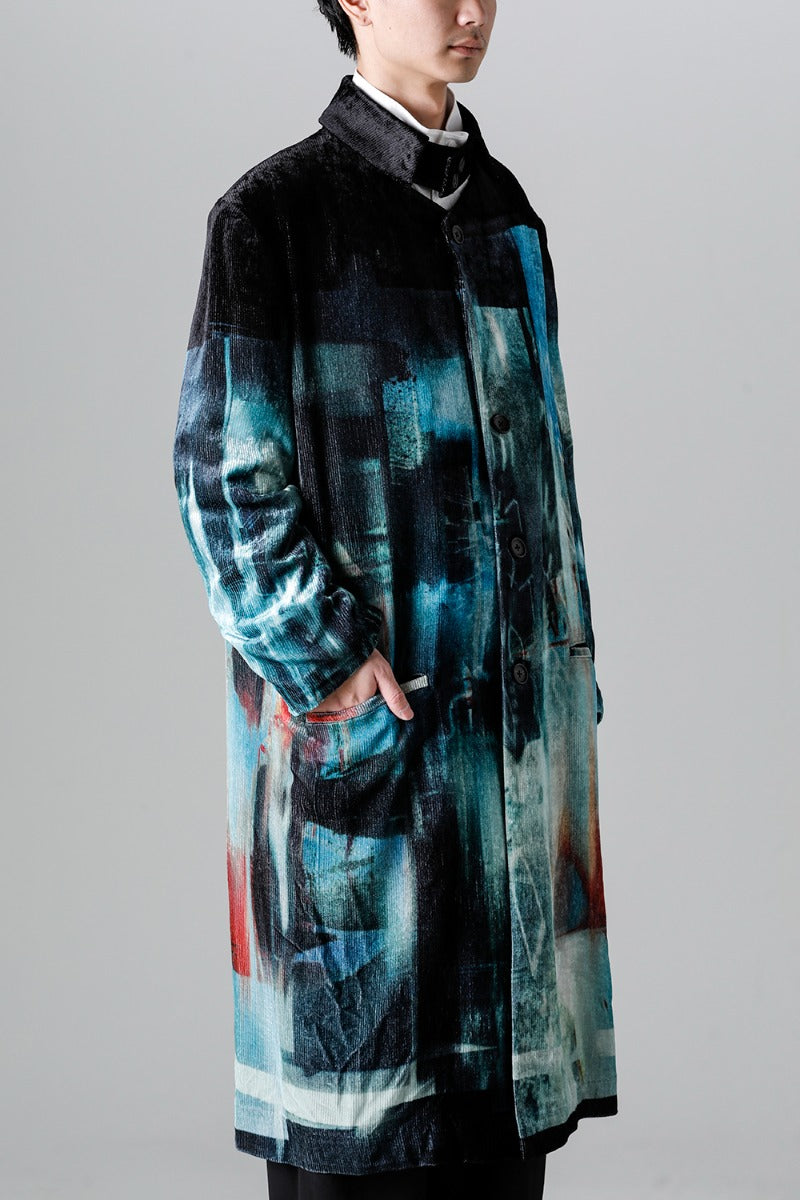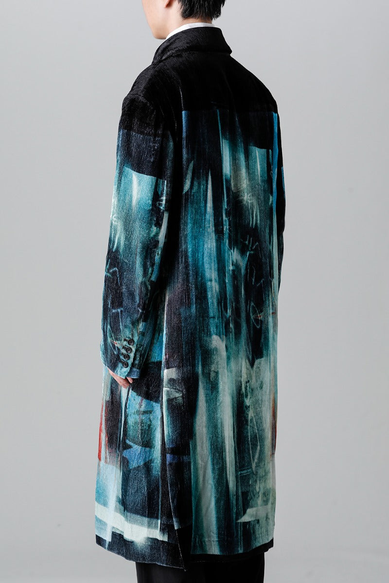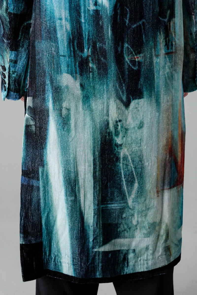 A corduroy printed long coat worn by Hideaki Ito at Runway LOOK 30.