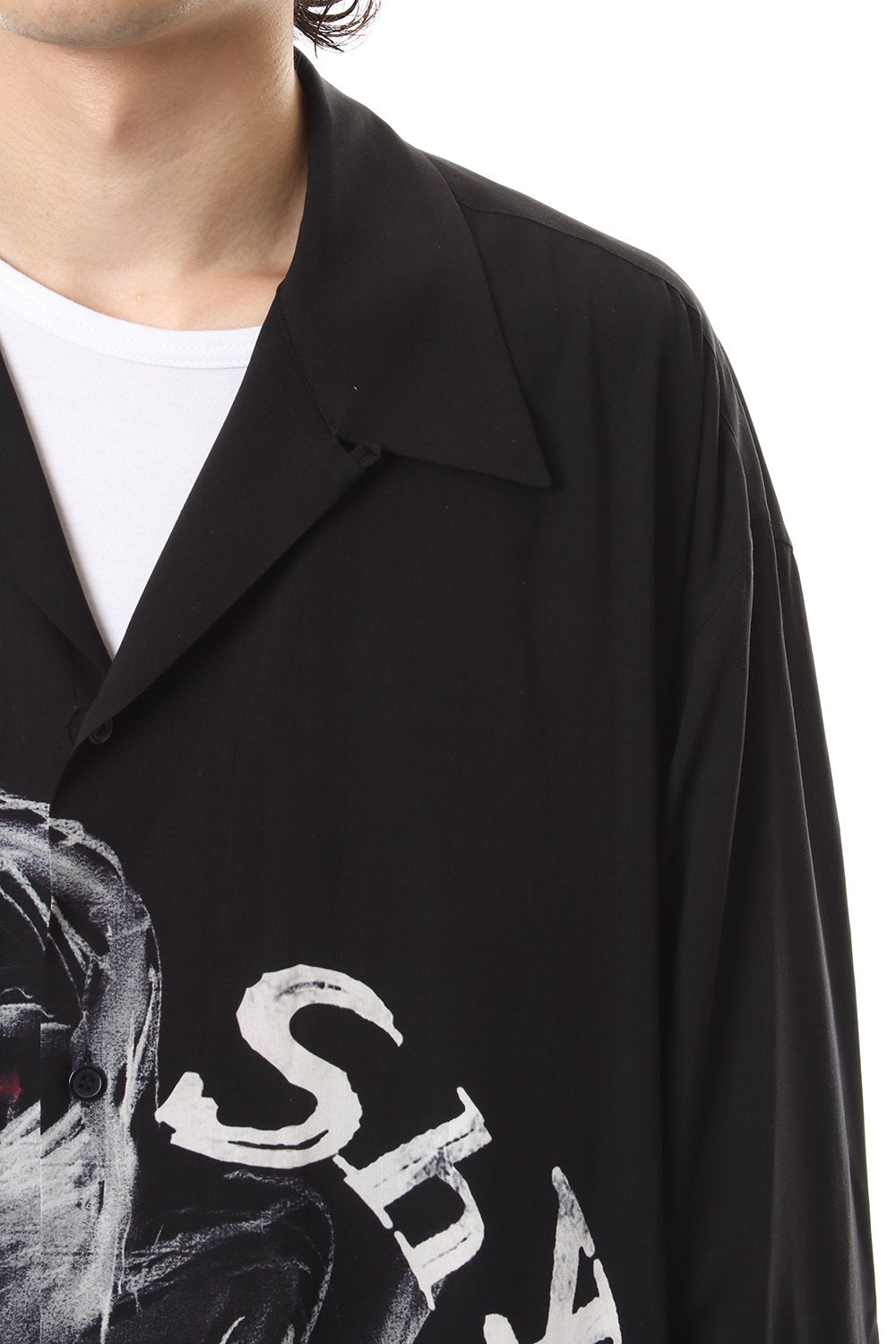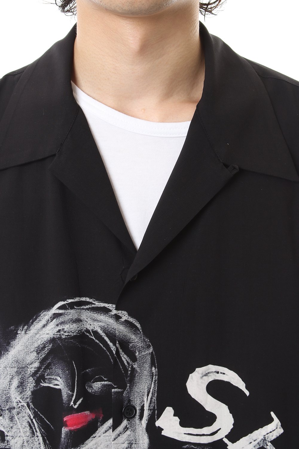 This is a long shirt with open color from the BLACK SCANDAL series, which is a collaboration item with Asakura Yuka. A picture of a woman with a red lip is used as the accent on the front, it is an impressive piece with graphics and text.