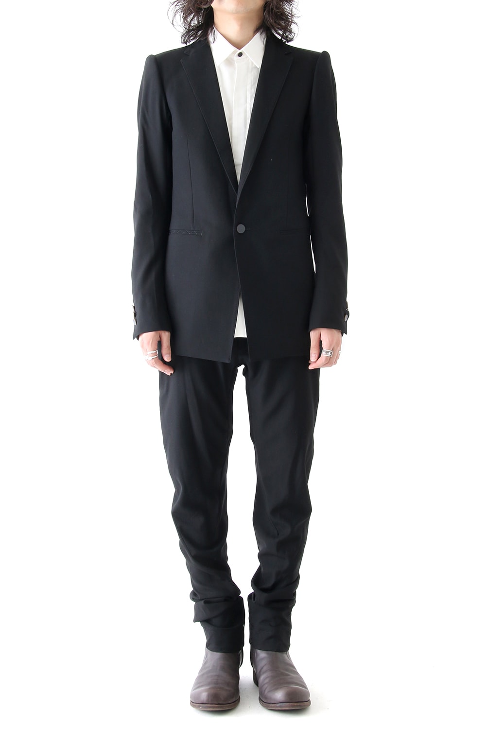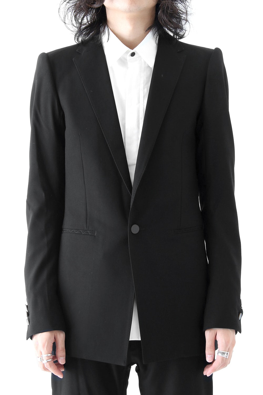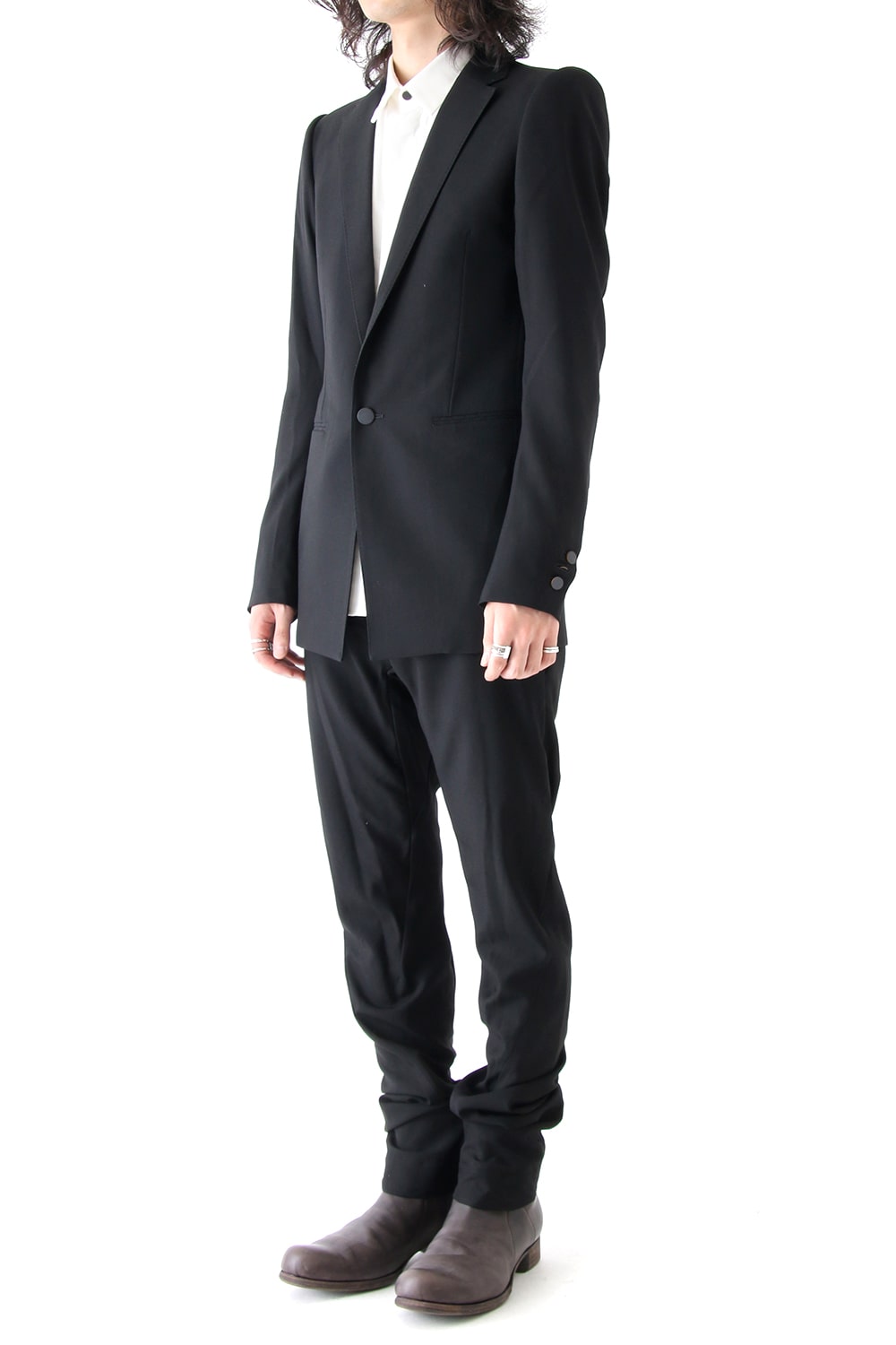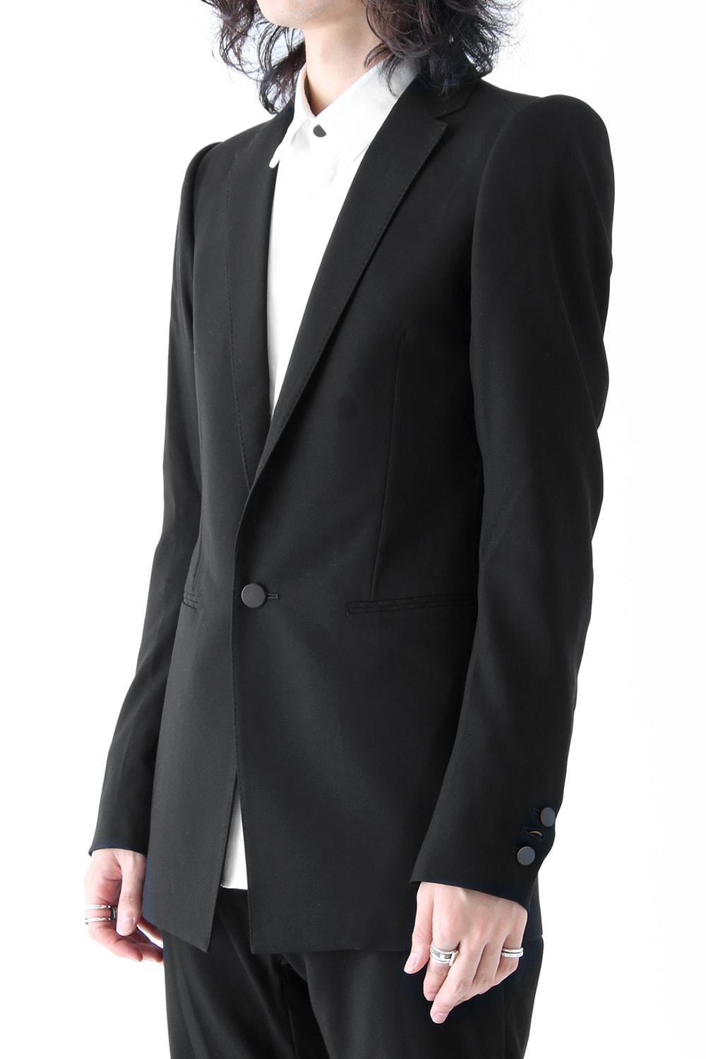 For this season the fabric used for this tailored jacket is Wool Super120’s Gabardine, with a nice thread quality, a unique smoothness. It was modified for a different hair core and shoulder pads, and to be lighter. The concave shoulder pattern has changed, the shoulder area has a nice mobility as usual, and the waist line is beautiful.