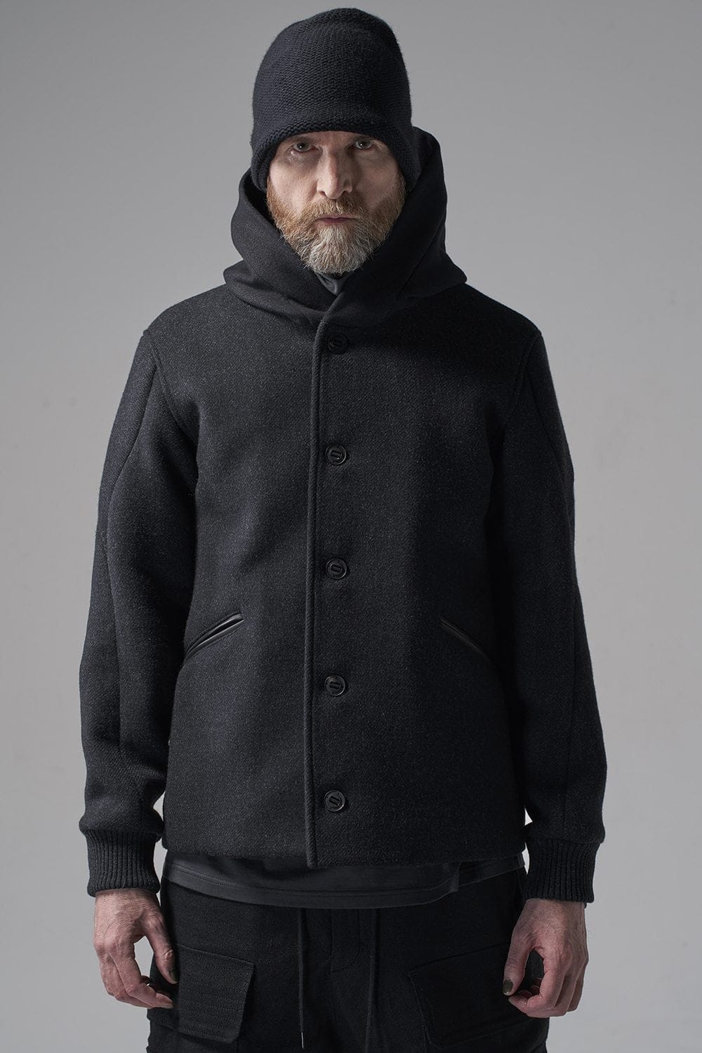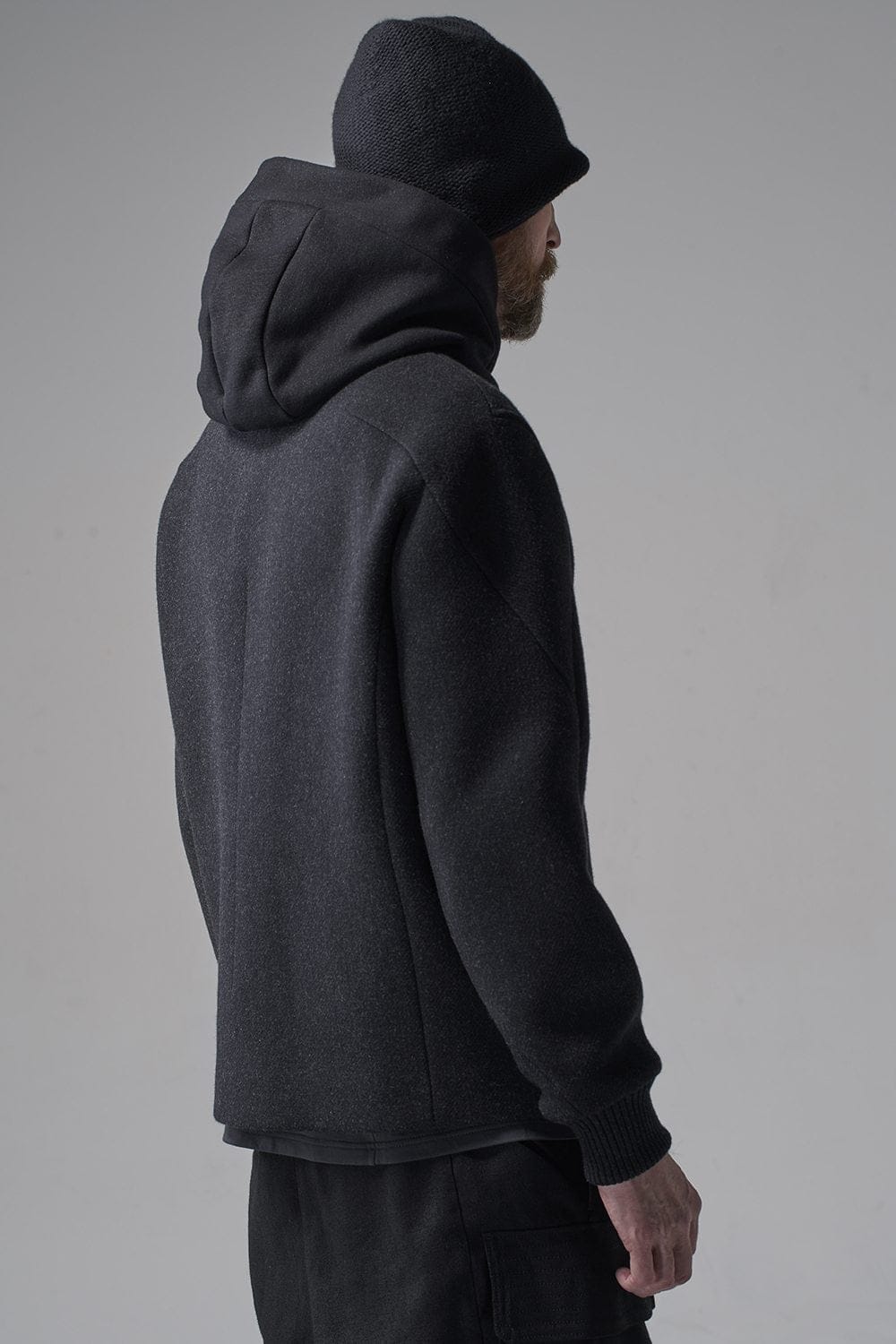 In addition, it uses a box silhouette on the basis of a vertical jacket, and the sleeve width is made extremely thin compared to the whole to express the three-dimensional feel of the sleeves.