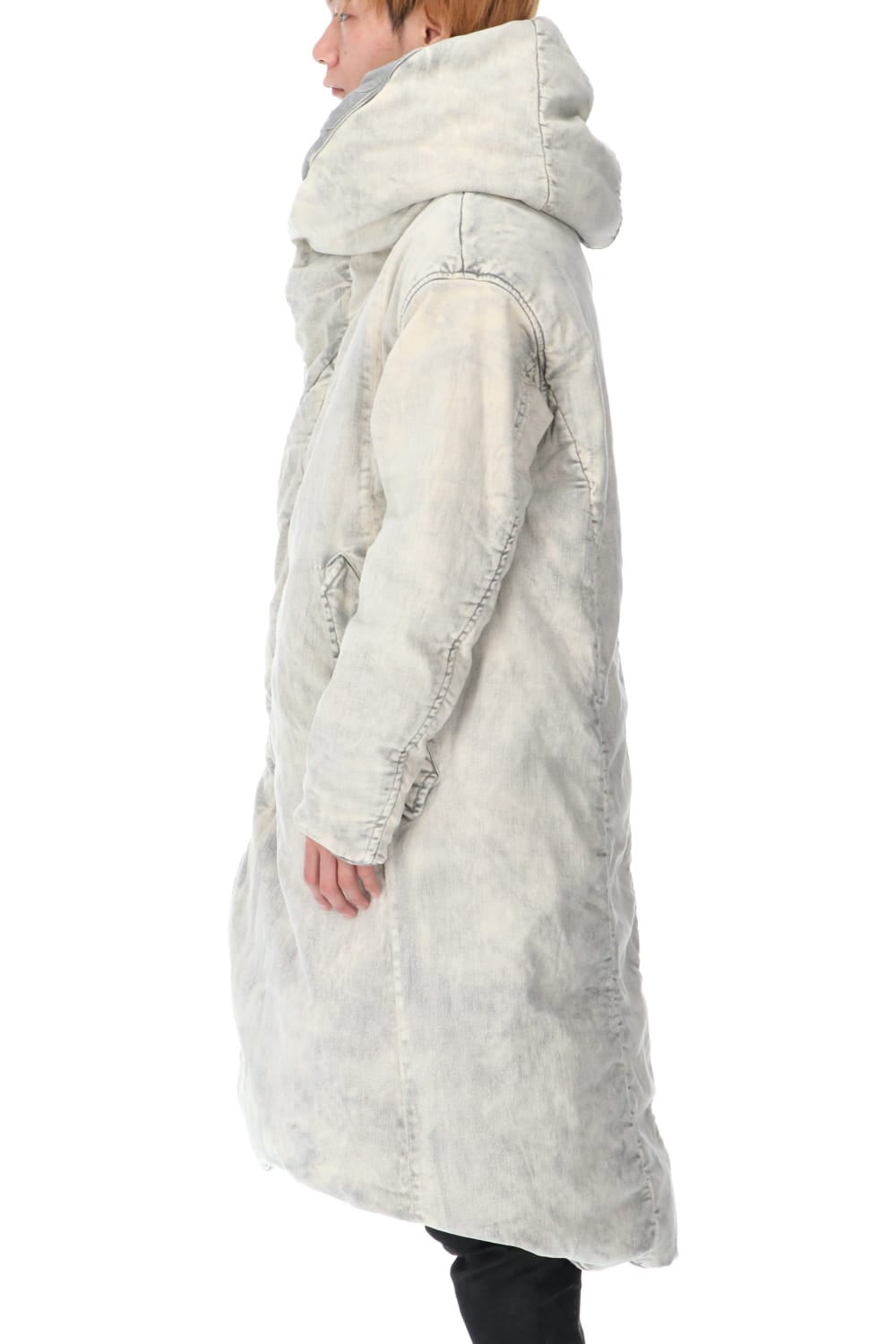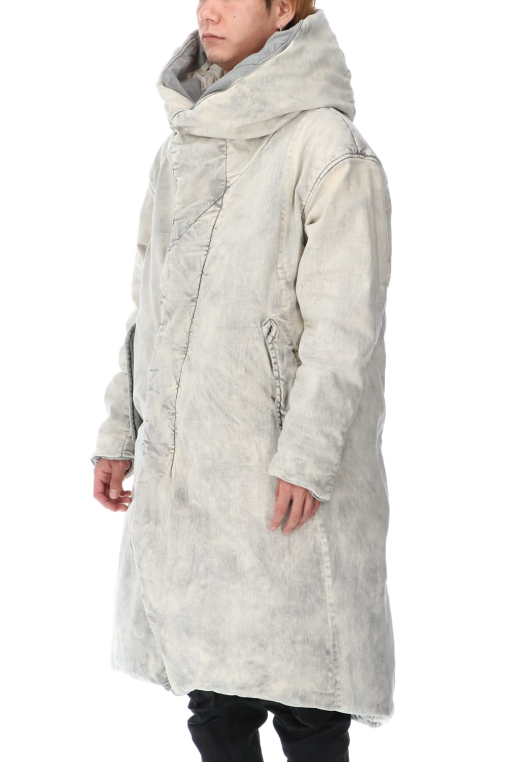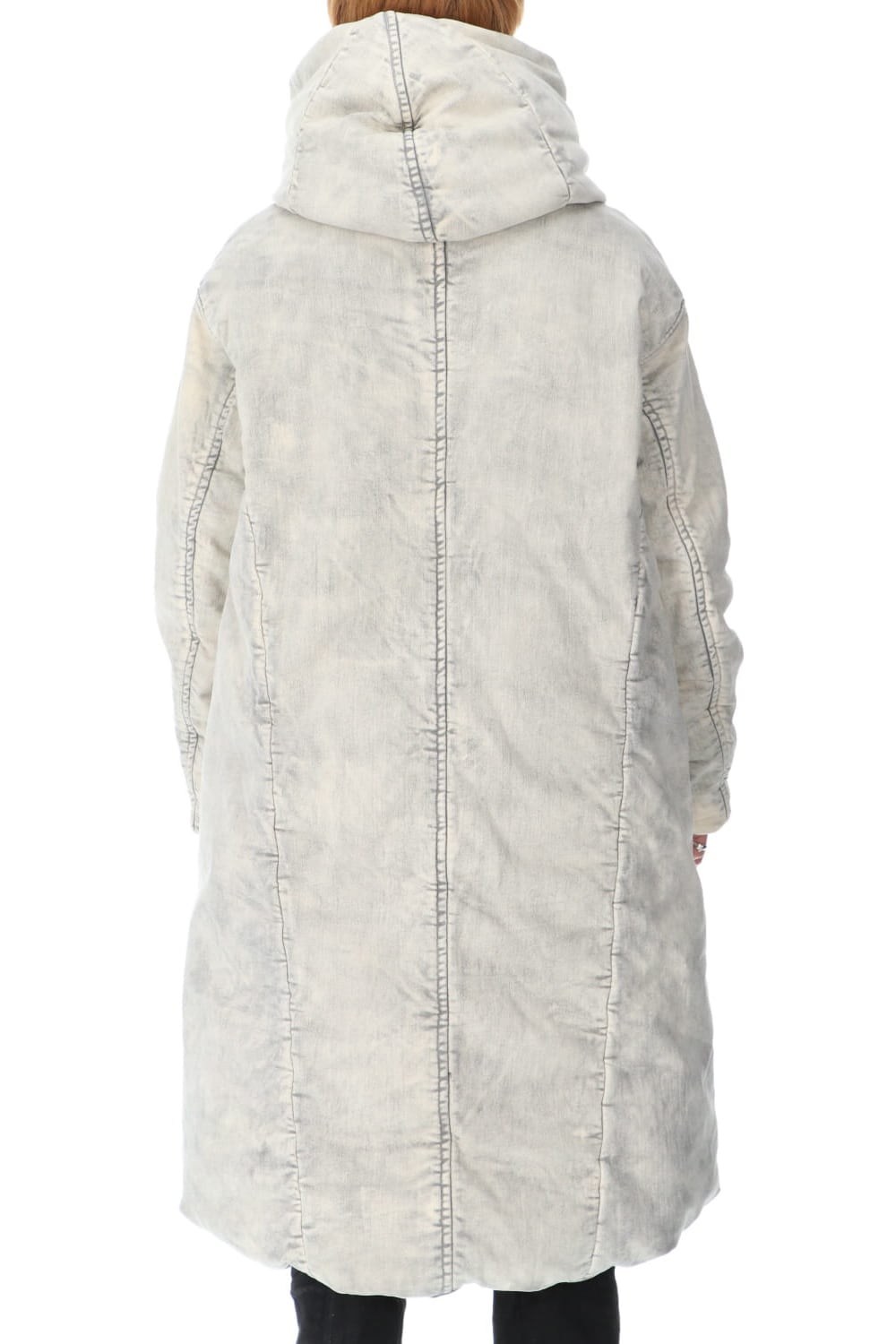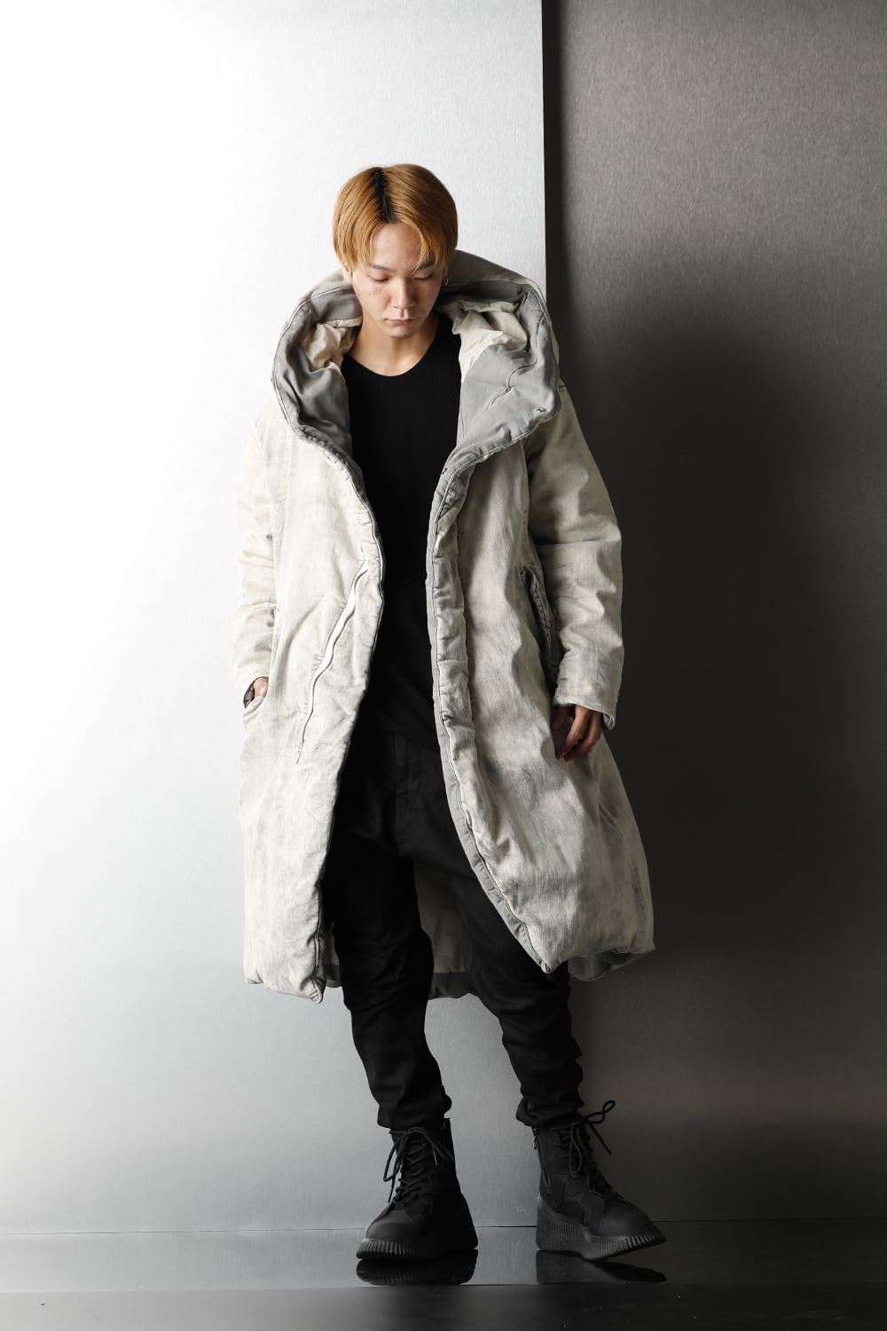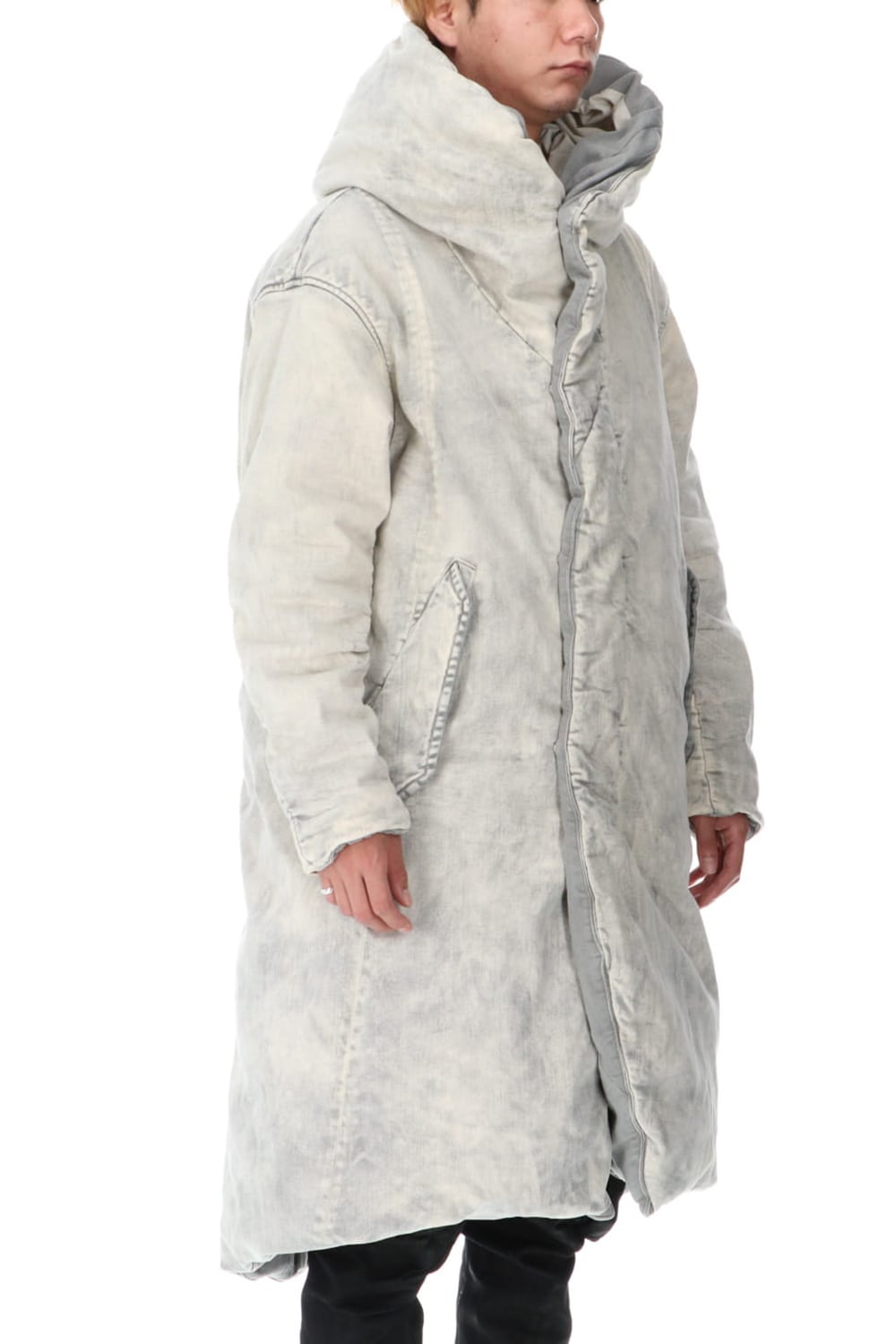 This is a denim hood coat made of stretch denim fabric with a three-layer structure and high strength.