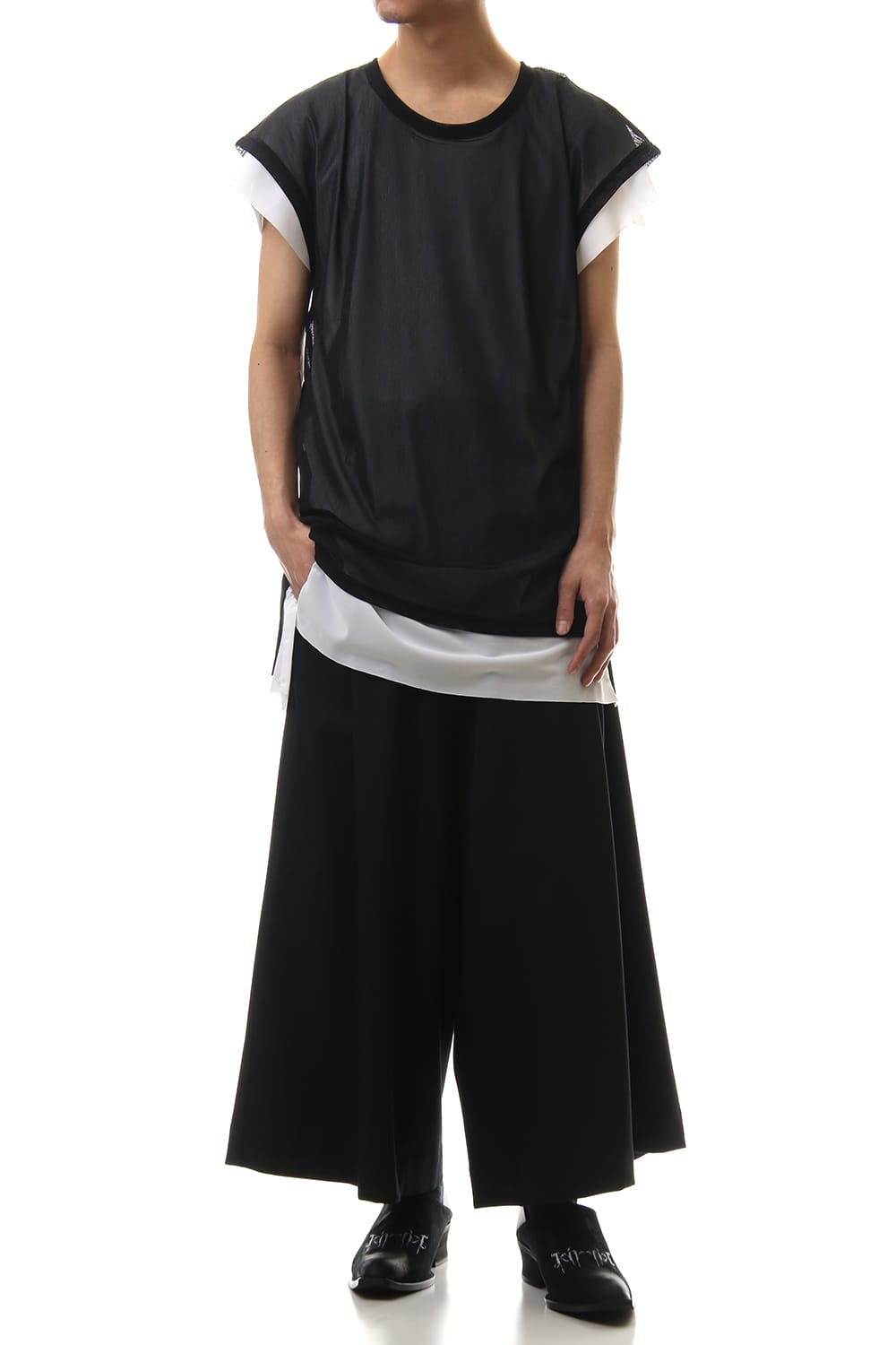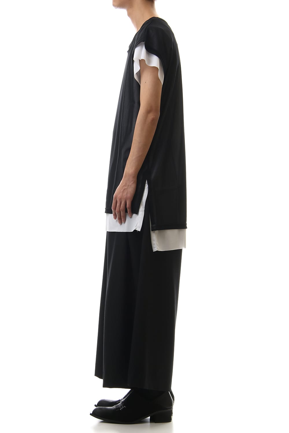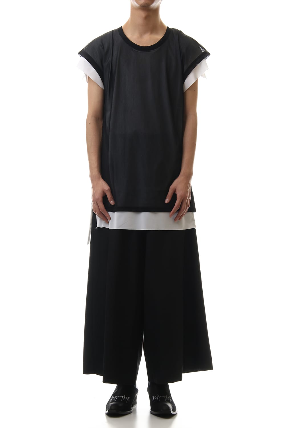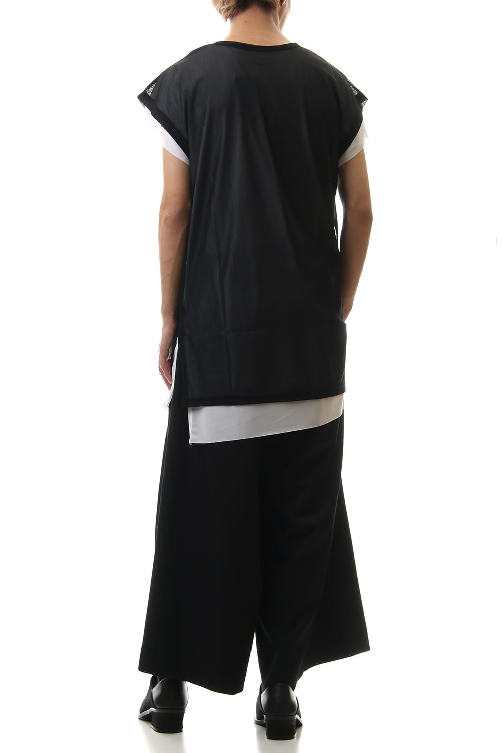 光沢のある素材にシースルー素材をレイヤードしたドロップショルダーカットソー。 ブランドが得意とする美しい作品に仕上がっております。 前後段違いの着丈がアクセントとなり、シンプルな作品でありながら単体でもご着用いただける作品です。