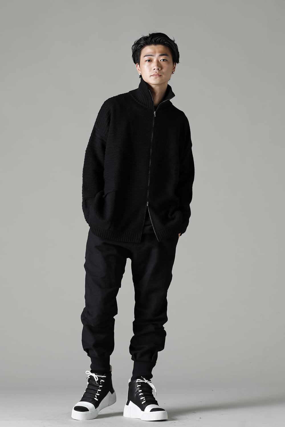 This is a high neck zip-up knit made with a front zipper type loose fit.