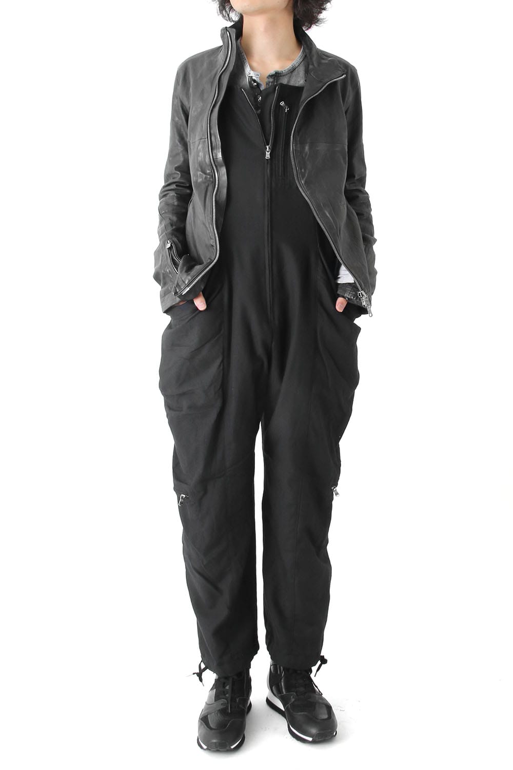 This high neck leather jacket is made with lamb leather that was tanned once then had oil applied to it and was retanned. You can enjoy its aging and glossiness evolution with usage and time. The sleeve hem zipper depth has a thumb hole.