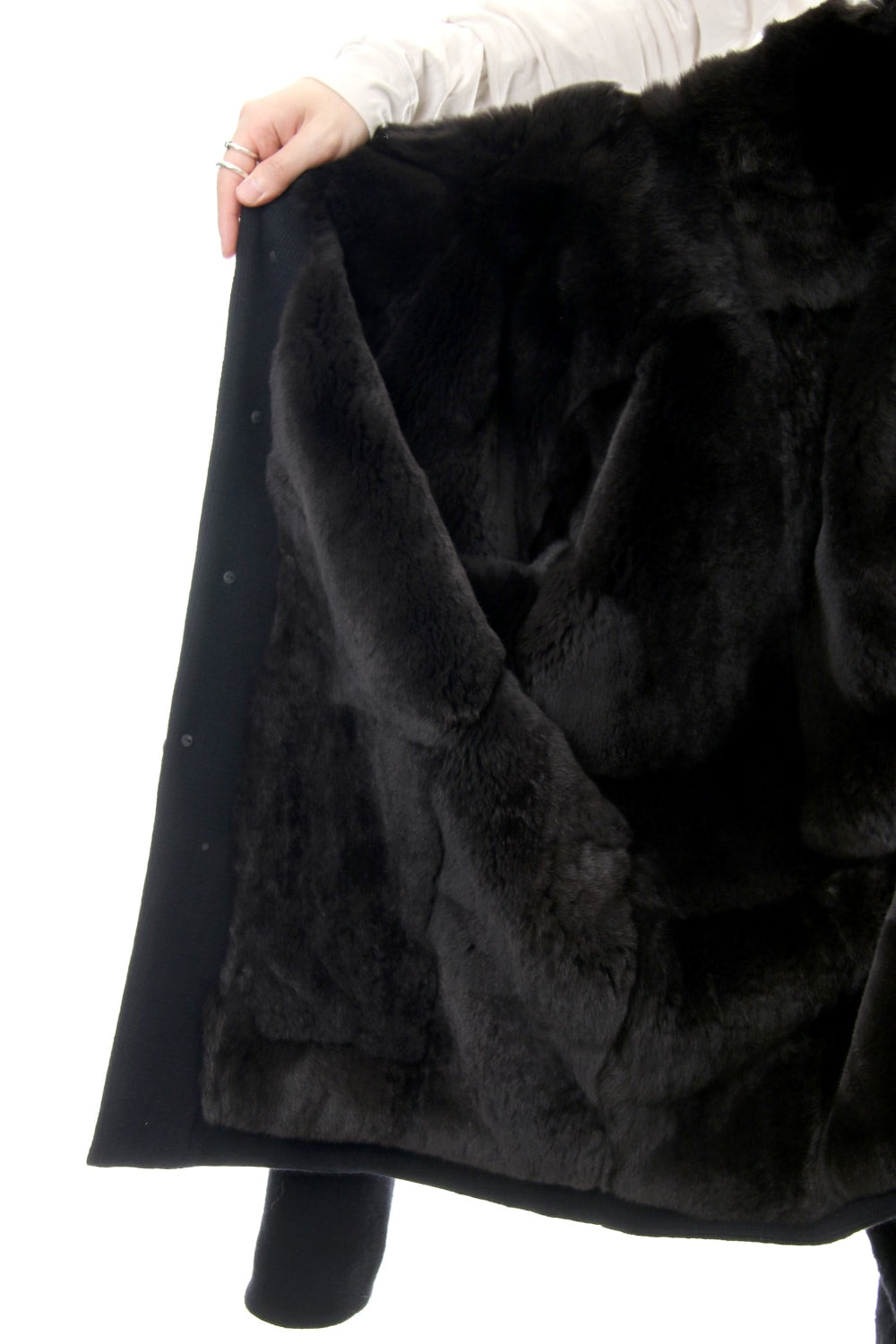It is made of the finest and softest Rex rabbit fur for the lining. It was carefully selected from only the Special A class fur that is the highest level. The design and shape of the jacket is like LEN-BRC and is fully lined lining of luxurious rex rabbit fur, including the sleeves.