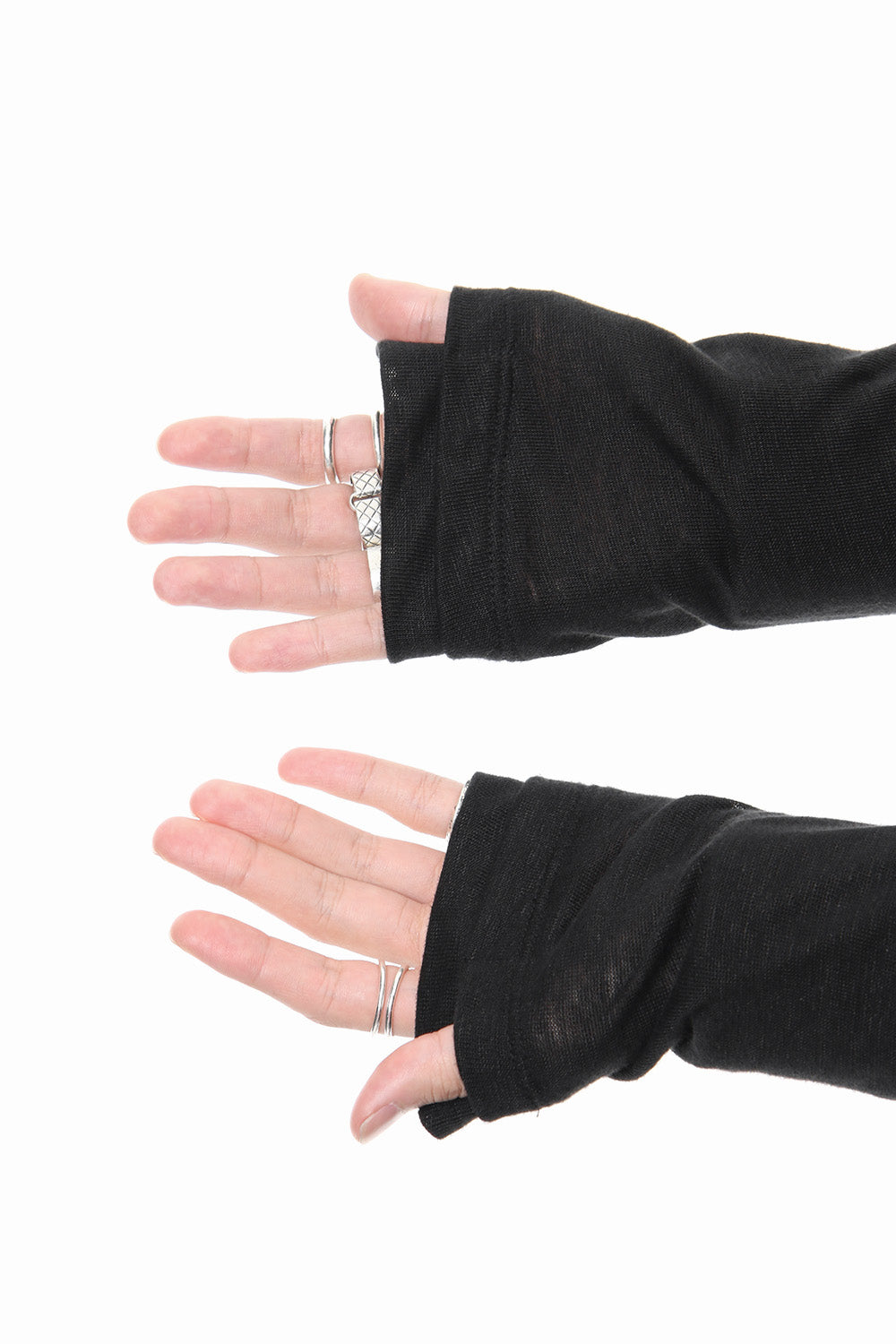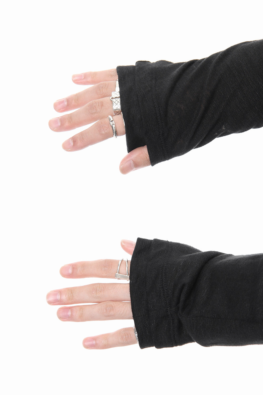 - Hidden thumbholes are attached to the layered cuffs