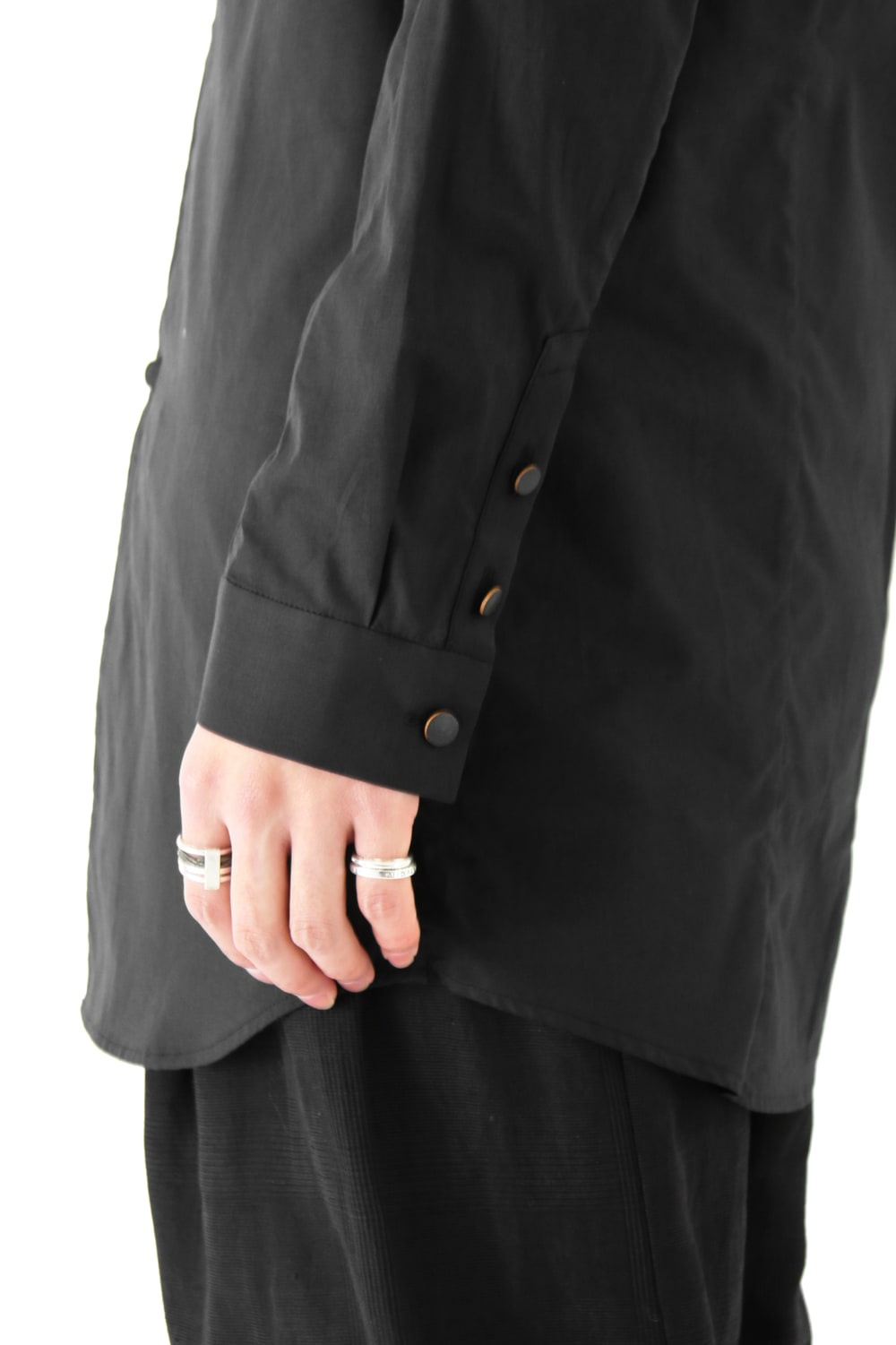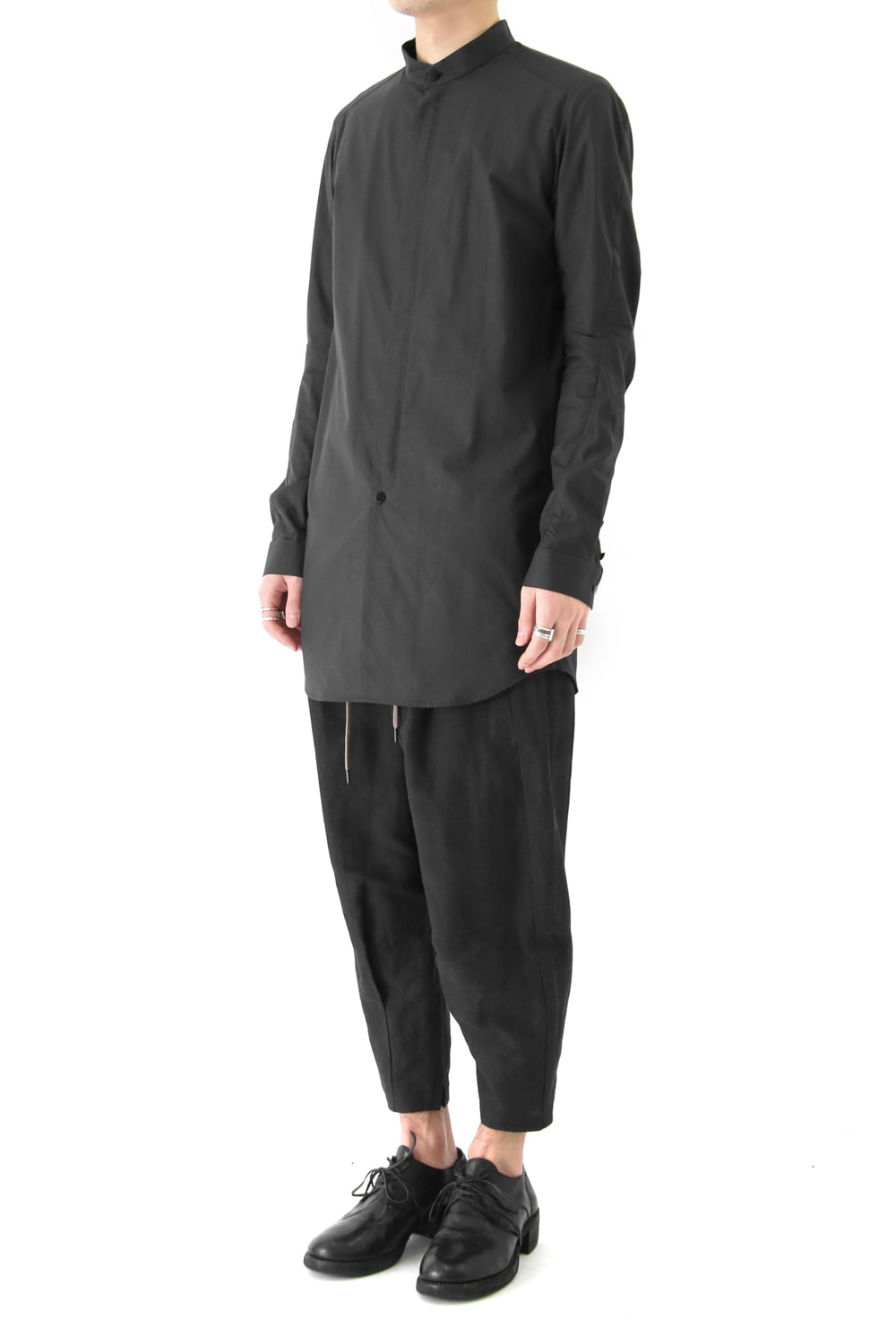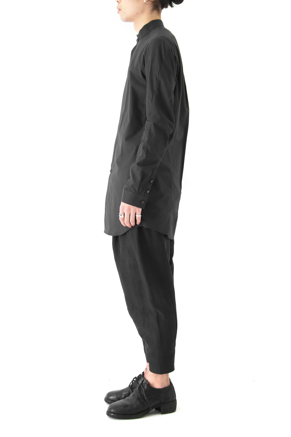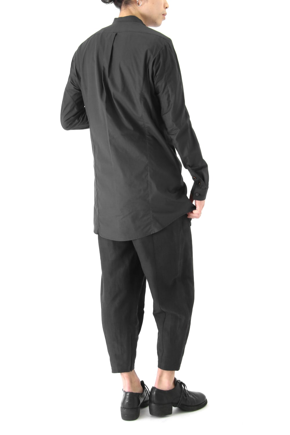 This specially ordered fabric is a Mahara cotton (Indian hybrid cotton variety). It had a prior dyeing and made into twill to create this great soft touch and comfortable material. The pattern is a classic regular fit base with a long length, and a mao collar.