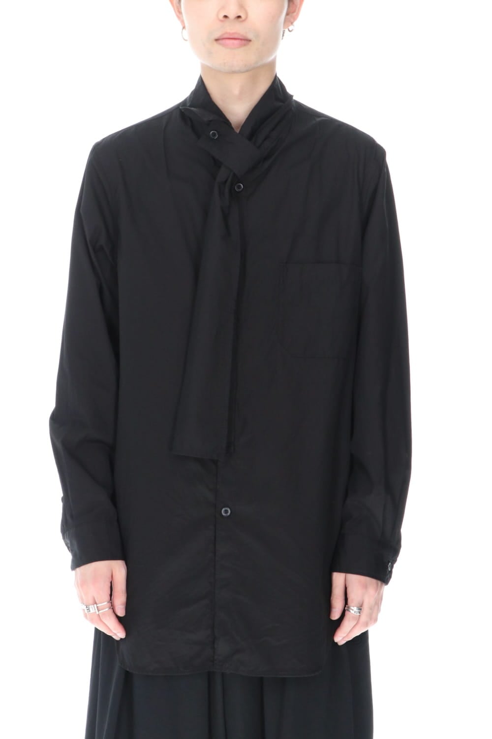 This is a standard scarf collar cotton broadcloth shirt. Since this item is made with loop stitching, it is designed to have natural wrinkles from the stitching so you can wear it without worrying about ironing.