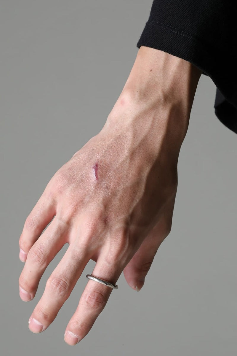 全体にエンボスが施されたラウンドリング。 希望を意味するクロスや、愛を意味するハートなどが散りばめられており、デザイナーの想いを感じ取ることができます。