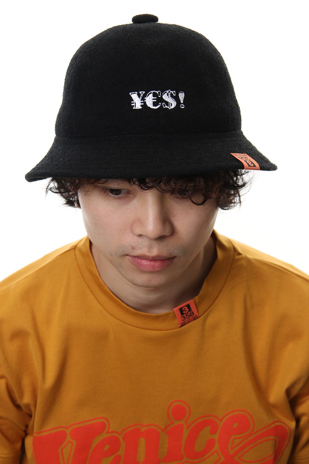 BELL HAT collaboration with hat brand “CA4LA". The embroidery design on the front is "YES!” with the "¥ € $ (Yen, Euro, Dollar) ”characters. The embroidery on the back has the word “Tokyo". It has a playful design with the statement 358 wash tag attached to mimic the tags from the cleaners. ※ It is possible to wash with the tags attached, if you dislike it, it is also possible to remove.