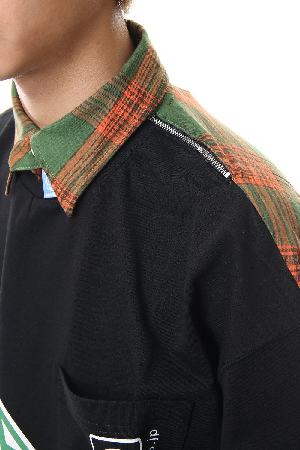 The hem of the shirt is also docked to the front body so when viewed from the front, it looks like a hoodie layered on top of the shirt.