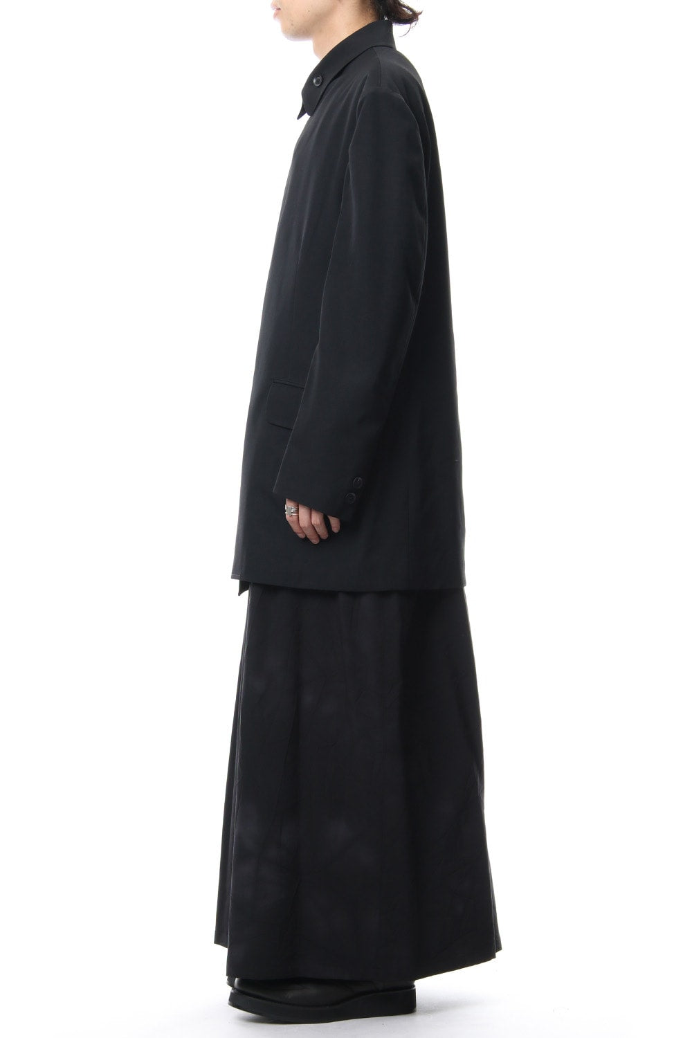 This double breasted jacket is made with wrinkled gabardine which is a classic fabric that has been used for decades by Yohji Yamamoto. It has a natural texture of wool with a minimal wrinkle or grain on the finishing wool process. It also produces a beautiful drape when the fabric falls and drifts when worn.