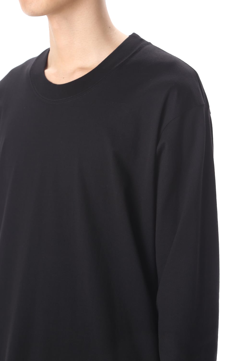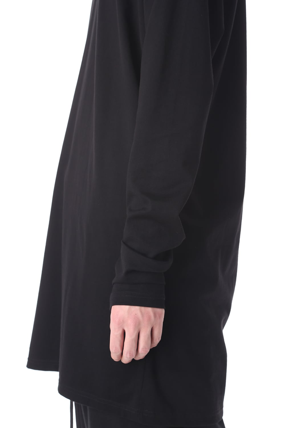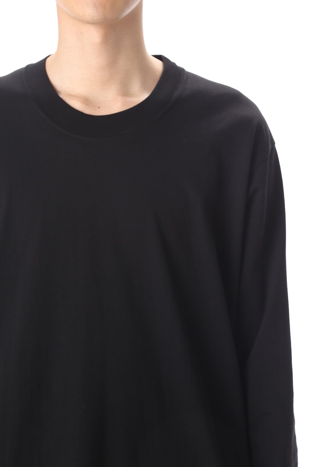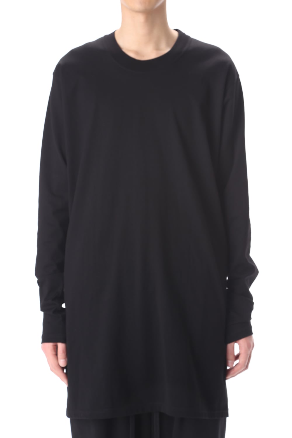 This is a long-sleeved T-shirt with a silhouette that is wider and longer than a standard T-shirt.