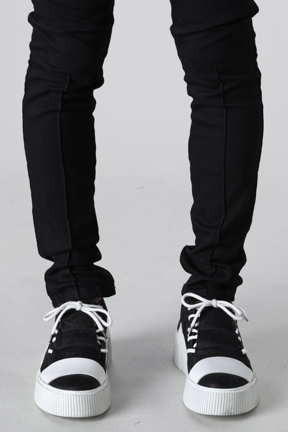 These sarouel pants are loose-fitting from the waist to the hips and skinny from the knees to the hem.