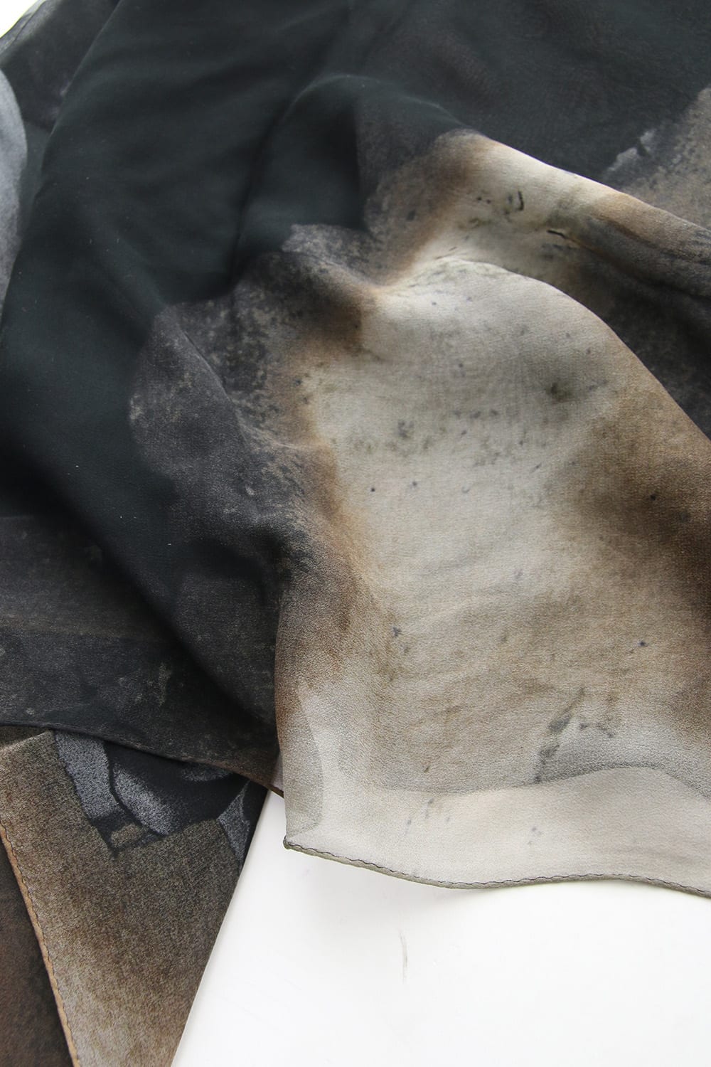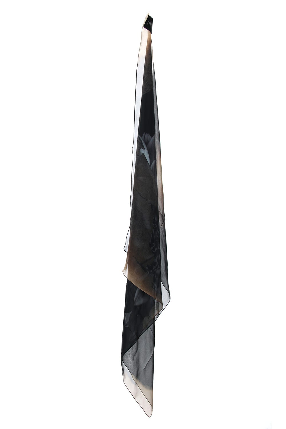A classic size scarf using 100% silk. It is a work which combines paper burned with the Dahlia photographed by photographer Hiroyuki Arakawa. 8 momme finished in a textile texture printed on inkjet with silk chiffon.