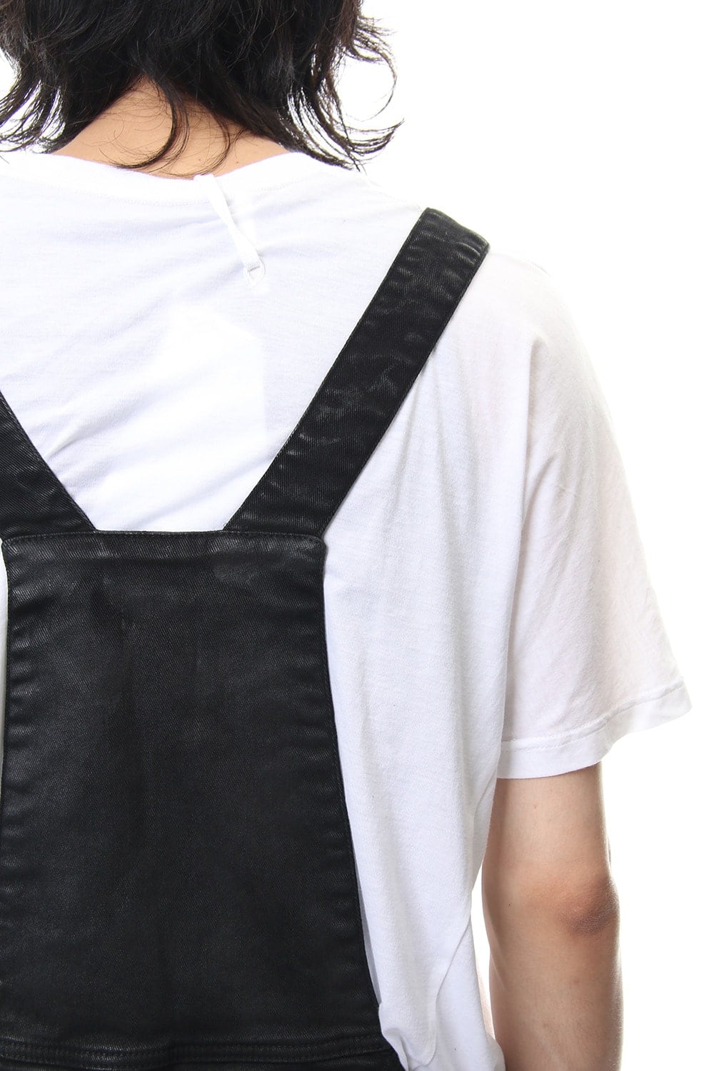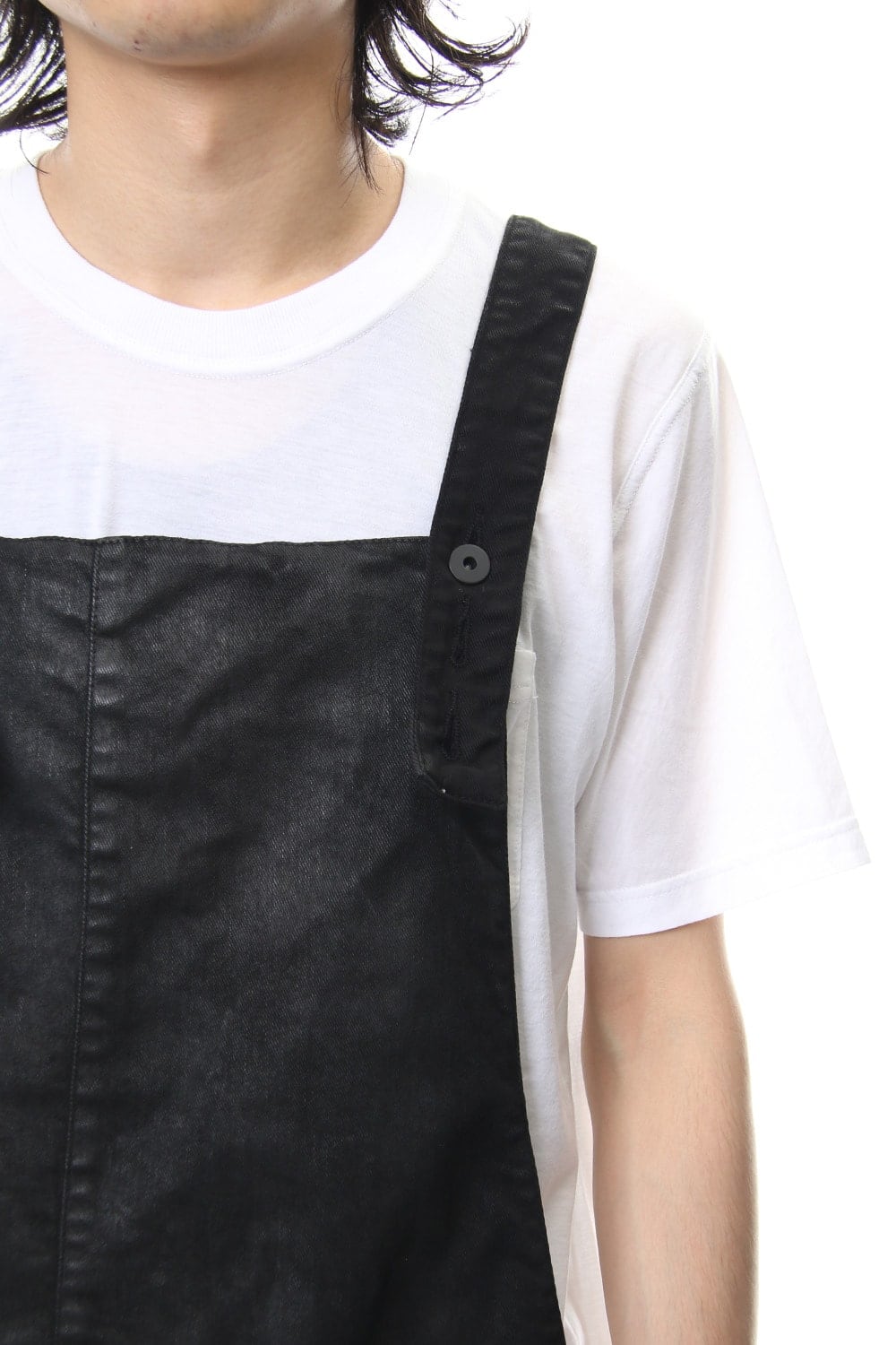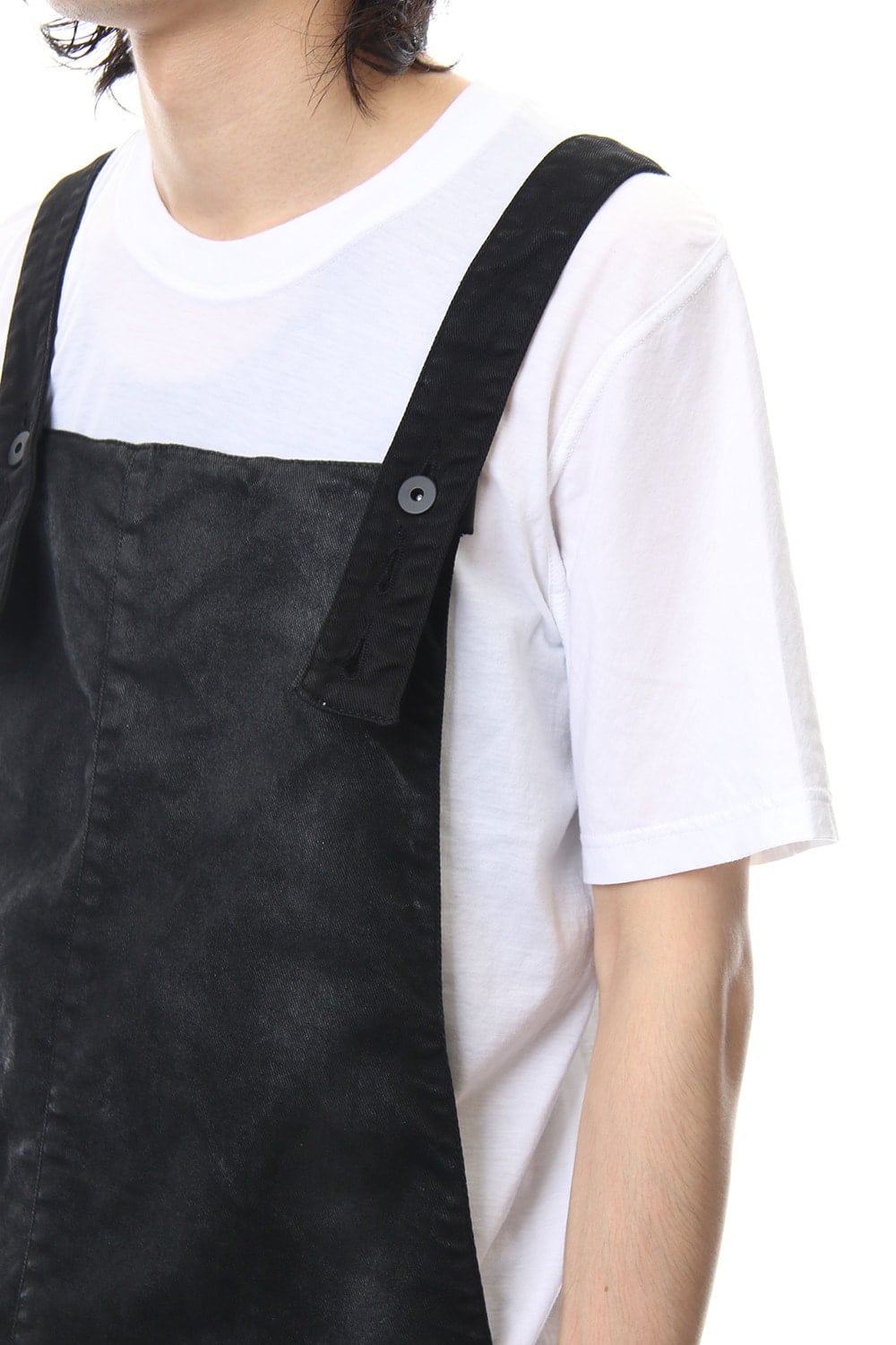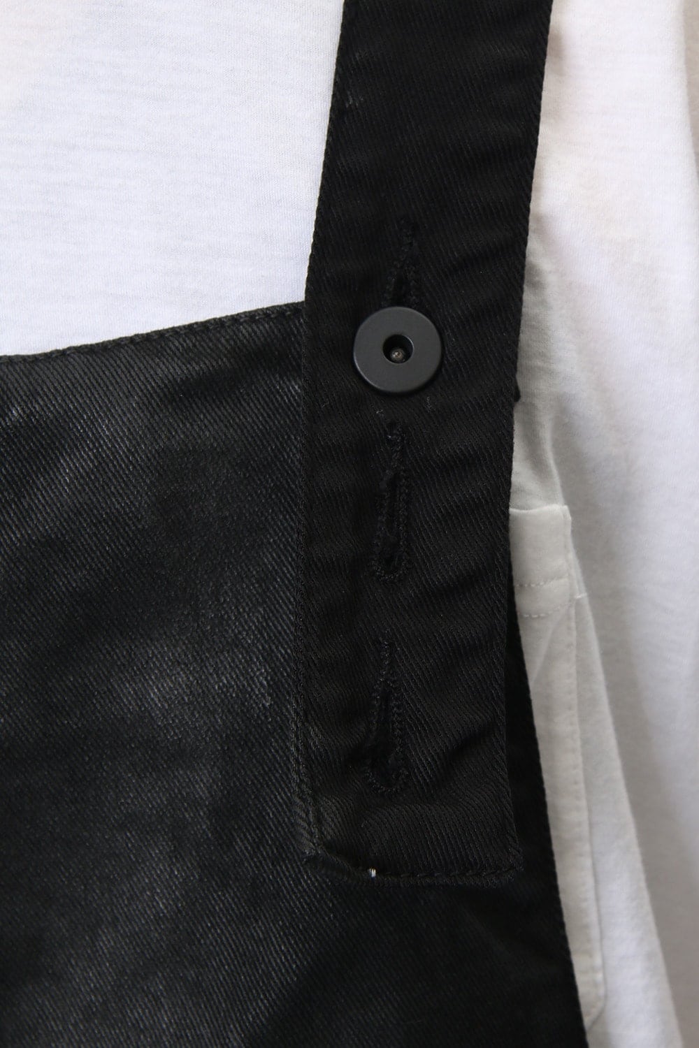 The shoulder part is adjustable with the buttons and it is embroidered with a brand name and a logo on the back part of the waist and the front part.