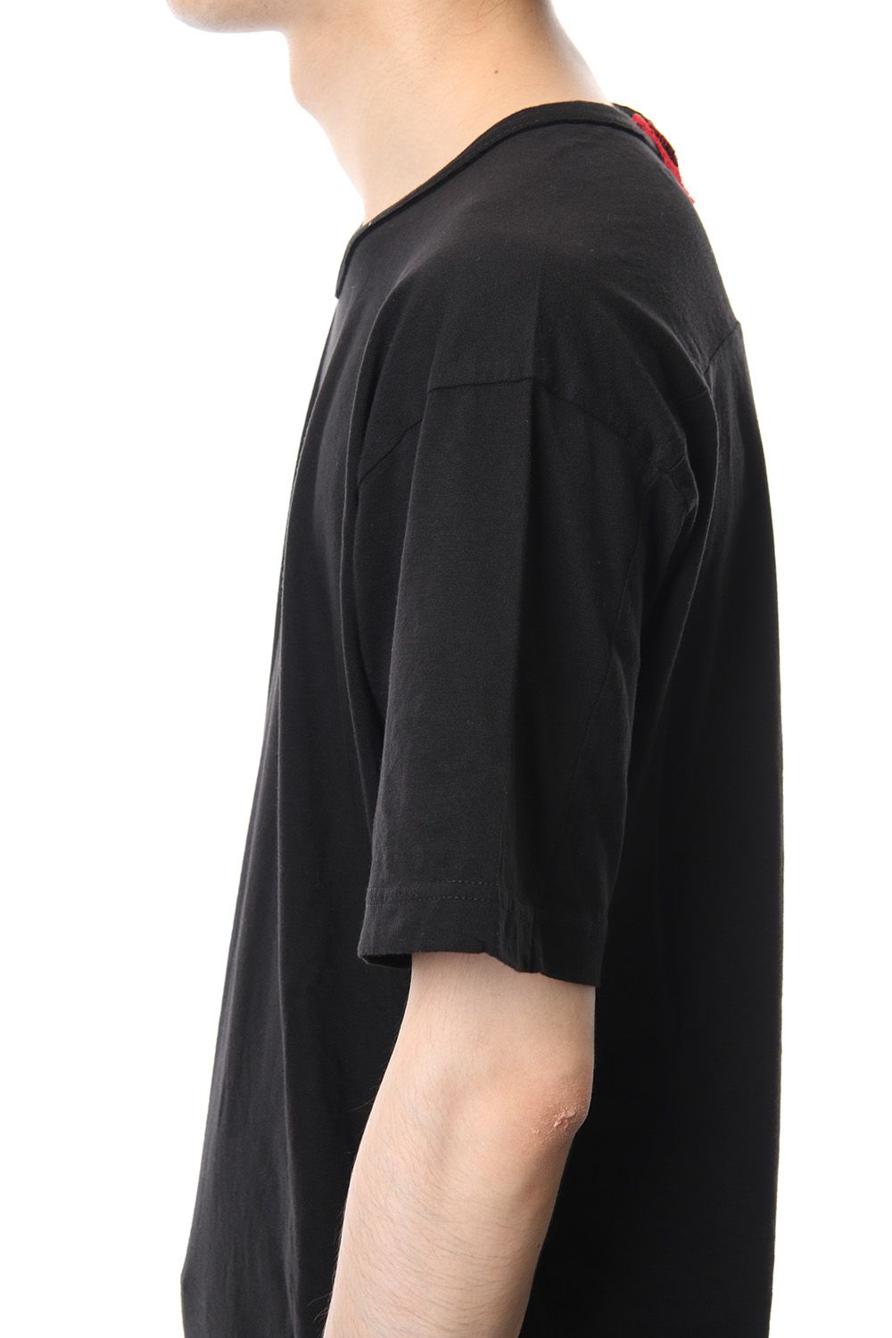 Product Dyeing Back Center Coloring Stitching Short Sleeve T Black × Red