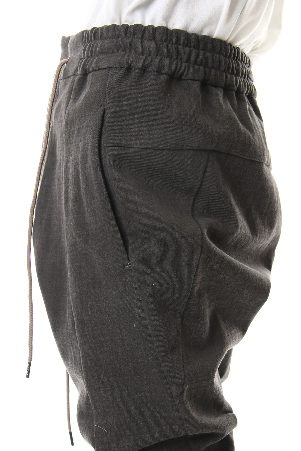 This easy pants are of Jodhpurs silhouette, the waist area is relaxed and the knees are thin.