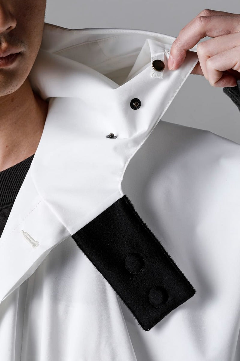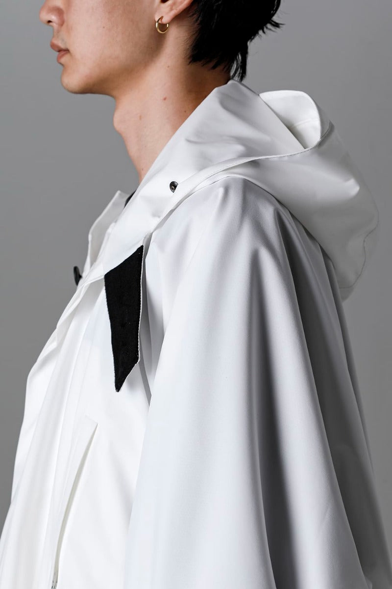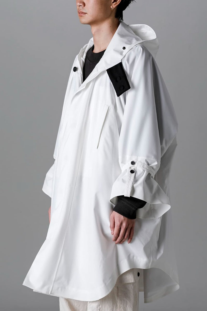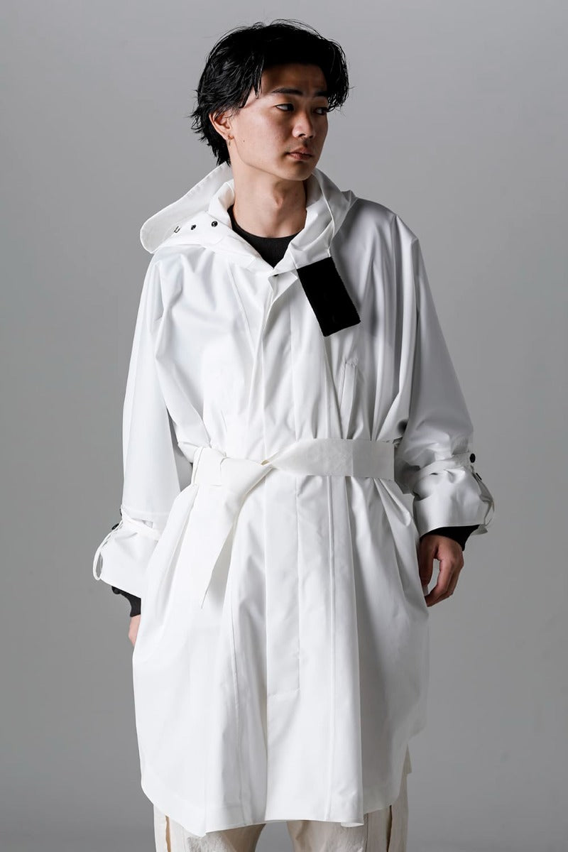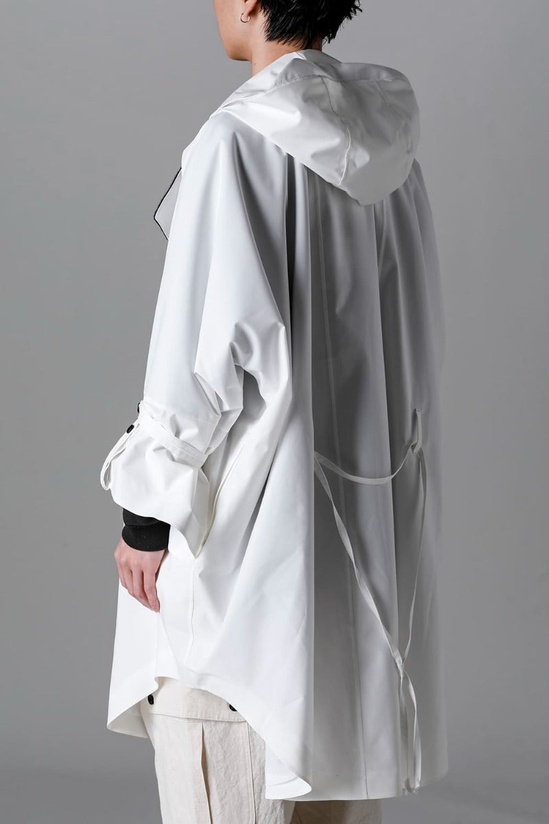 This item, which is named after the meaning between a raincoat and a poncho, is characterized by the amount of fabric that is plentifully taken like a poncho and the wide sleeves of kimono that is inspired by Japanese traditional kimono.
