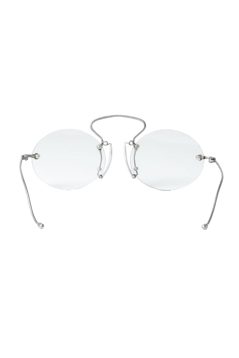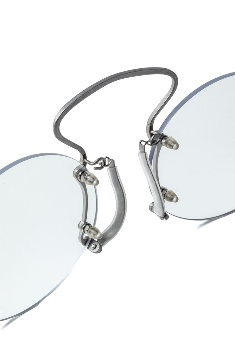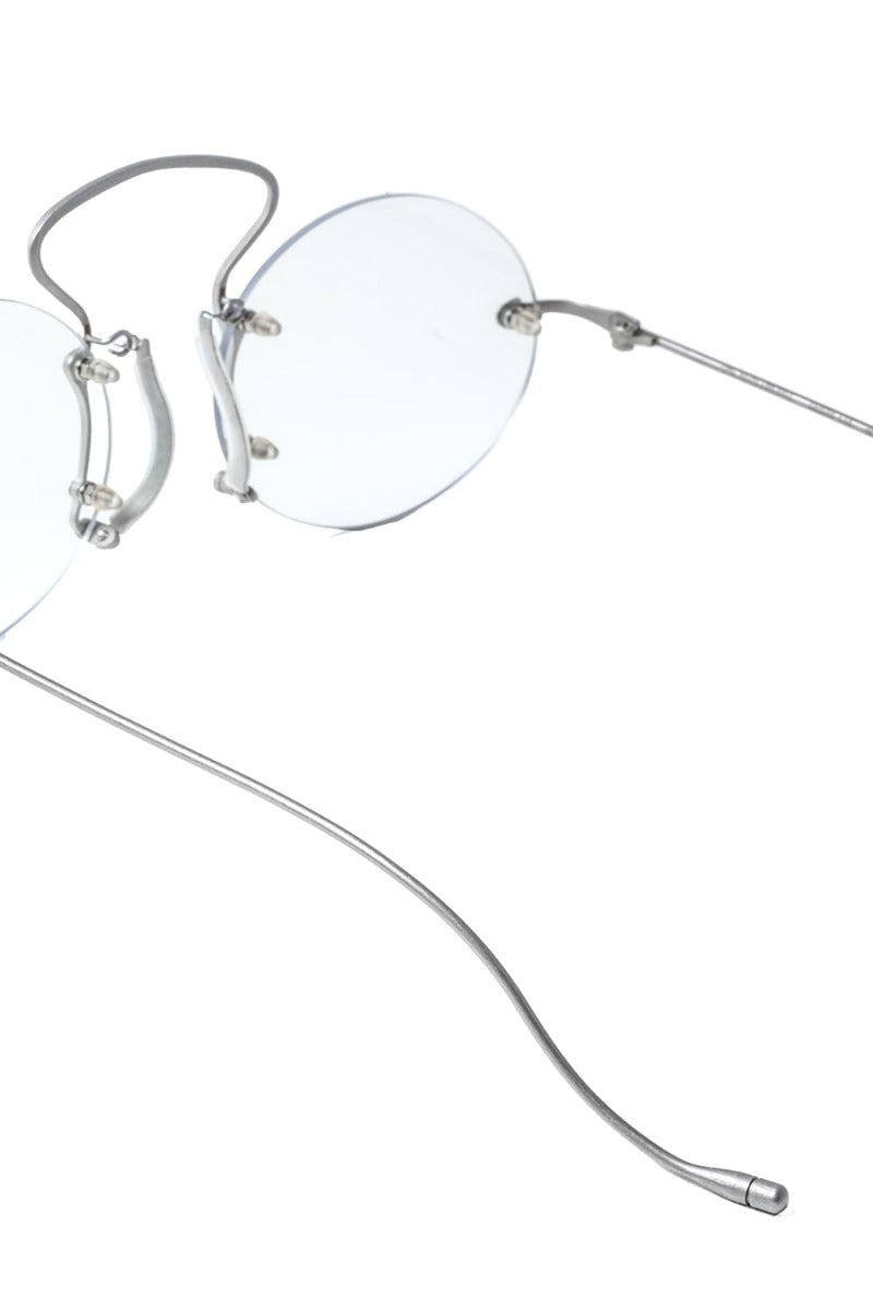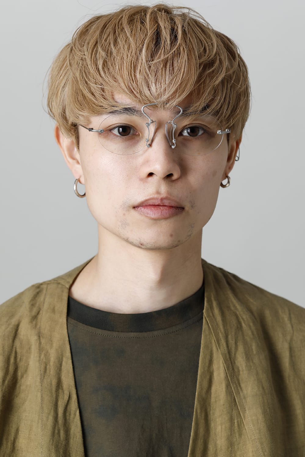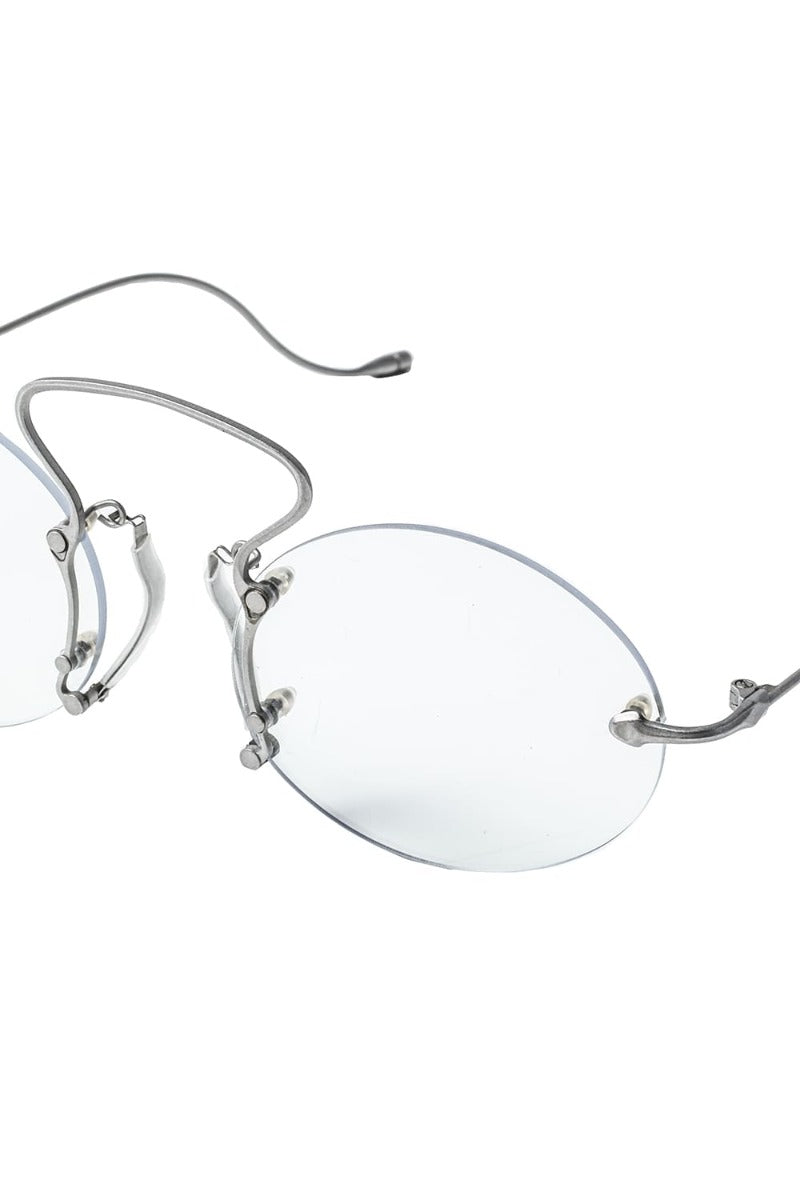 "RG00UW6 PINCE-NEZ Oval" is a model also worn in the UMA WANG 21 -22 AW collection look. This model, named "PINCE-NEZ Oval", originally a rimless design with attached temples, based on the finch-type spectacles that were popular in Europe and the USA in the 19th and early 20th centuries, in which the temples were removed and fixed only at the nose. The nose pad is spring-loaded like the original finch-type, and it is light enough to forget that it has a very good fit. Accented with a curved and distinctive bridge design, the frame comes in two colors: Vintage Black and Vintage Silver. The brand's proposal was mainly color lenses, but our shop has selected clear lenses that bring out the bridge design and are easy to image even when combined with light colored lenses. You can change it to your favorite color or degree lenses, so please enjoy it with your favorite combination.