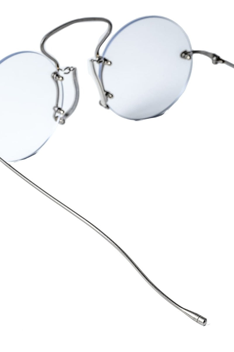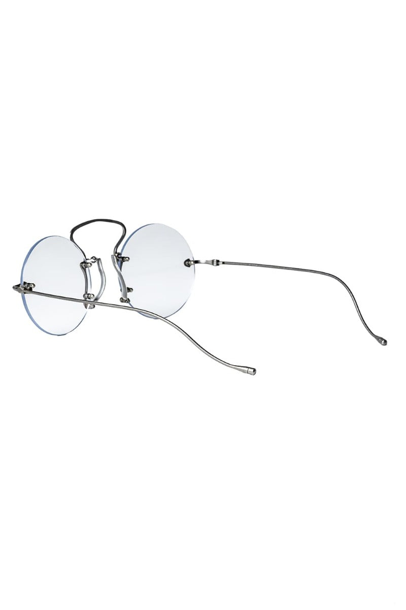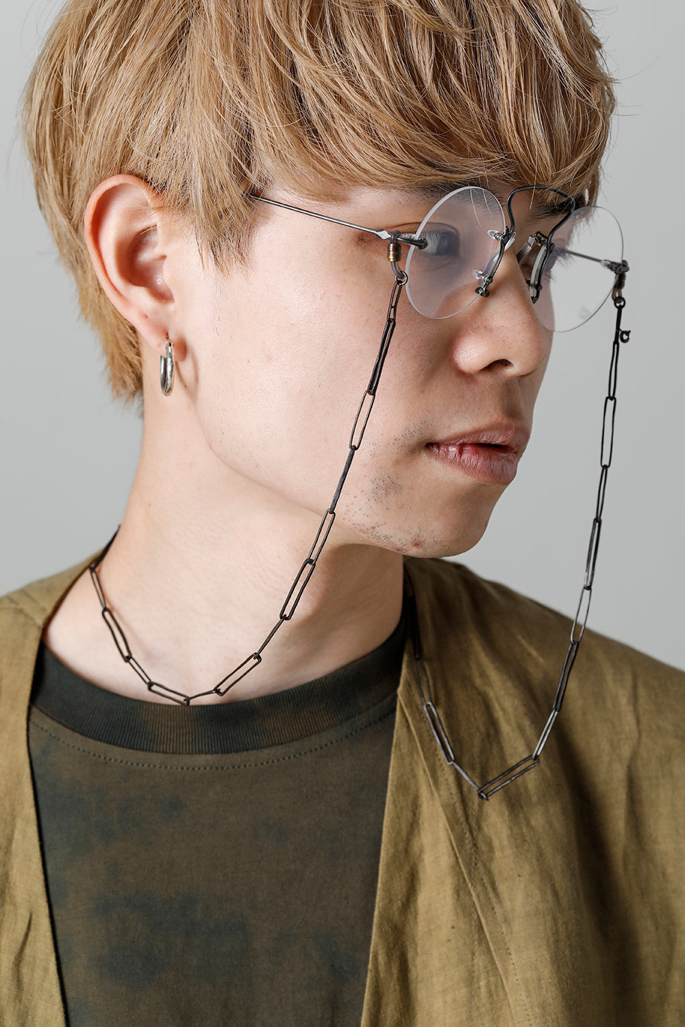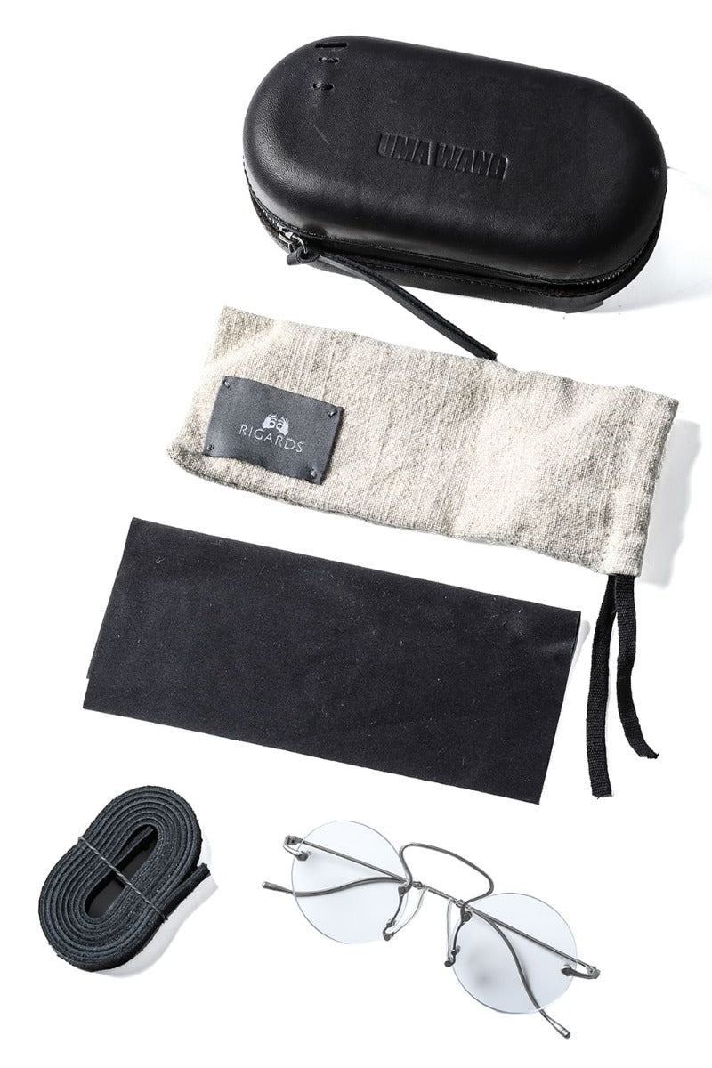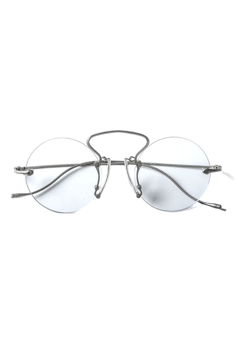 "RG00UW9 PINCE-NEZ Round" is a model that was also worn on the runway of the UMA WANG 22 SS collection. Called "PINCE-NEZ Round", originally a rimless design with attached temples, based on the finch-type spectacles that were popular in Europe and the USA in the 19th and early 20th centuries, in which the temples were removed and fixed only at the nose. The nose pad is spring-loaded like the original finch-type, and it is light enough to forget that it has a very good fit. Accented with a curved and distinctive bridge design, the frame comes in two colors: Vintage Black and Vintage Silver. The brand's proposal was mainly color lenses, but our shop has selected clear lenses that bring out the bridge design and are easy to image even when combined with light colored lenses. You can change it to your favorite color or degree lenses, so please enjoy it with your favorite combination.