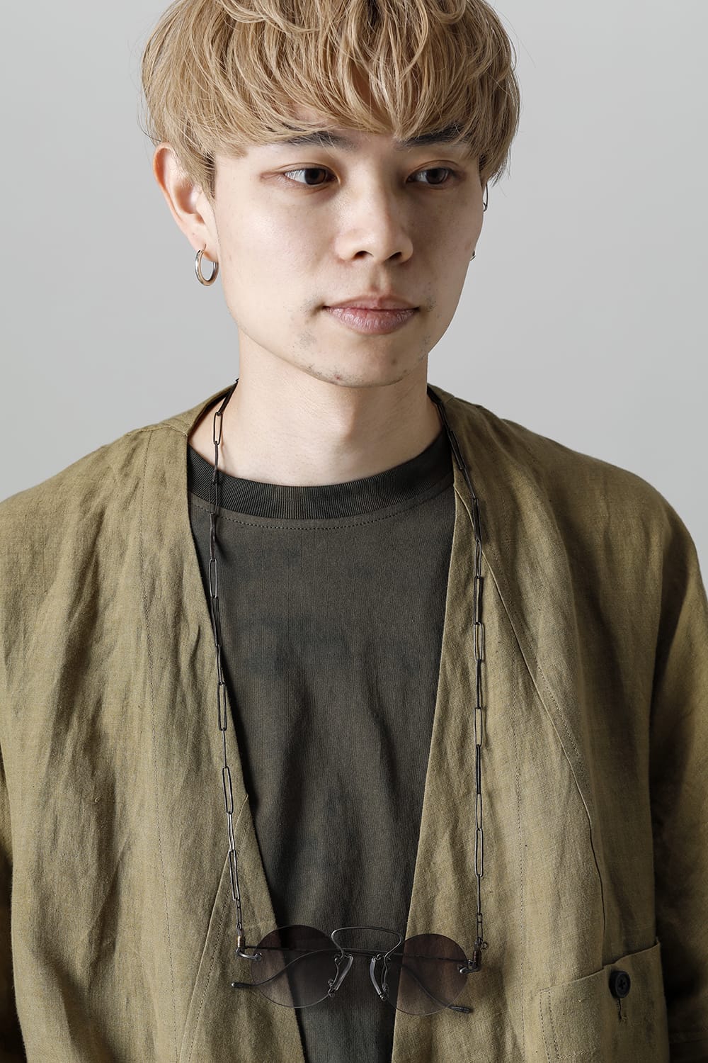 "RG00UW9 PINCE-NEZ Round" is a model that was also worn on the runway of the UMA WANG 22 SS collection. Called "PINCE-NEZ Round", originally a rimless design with attached temples, based on the finch-type spectacles that were popular in Europe and the USA in the 19th and early 20th centuries, in which the temples were removed and fixed only at the nose. The nose pad is spring-loaded like the original finch-type, and it is light enough to forget that it has a very good fit. Accented with a curved and distinctive bridge design, the frame comes in two colors: Vintage Black and Vintage Silver. For this item, we select the one which adopts gradation light gray lens which can be worn as sunglasses immediately after purchase. You can change it to your favorite color or degree lenses, so please enjoy it with your favorite combination.