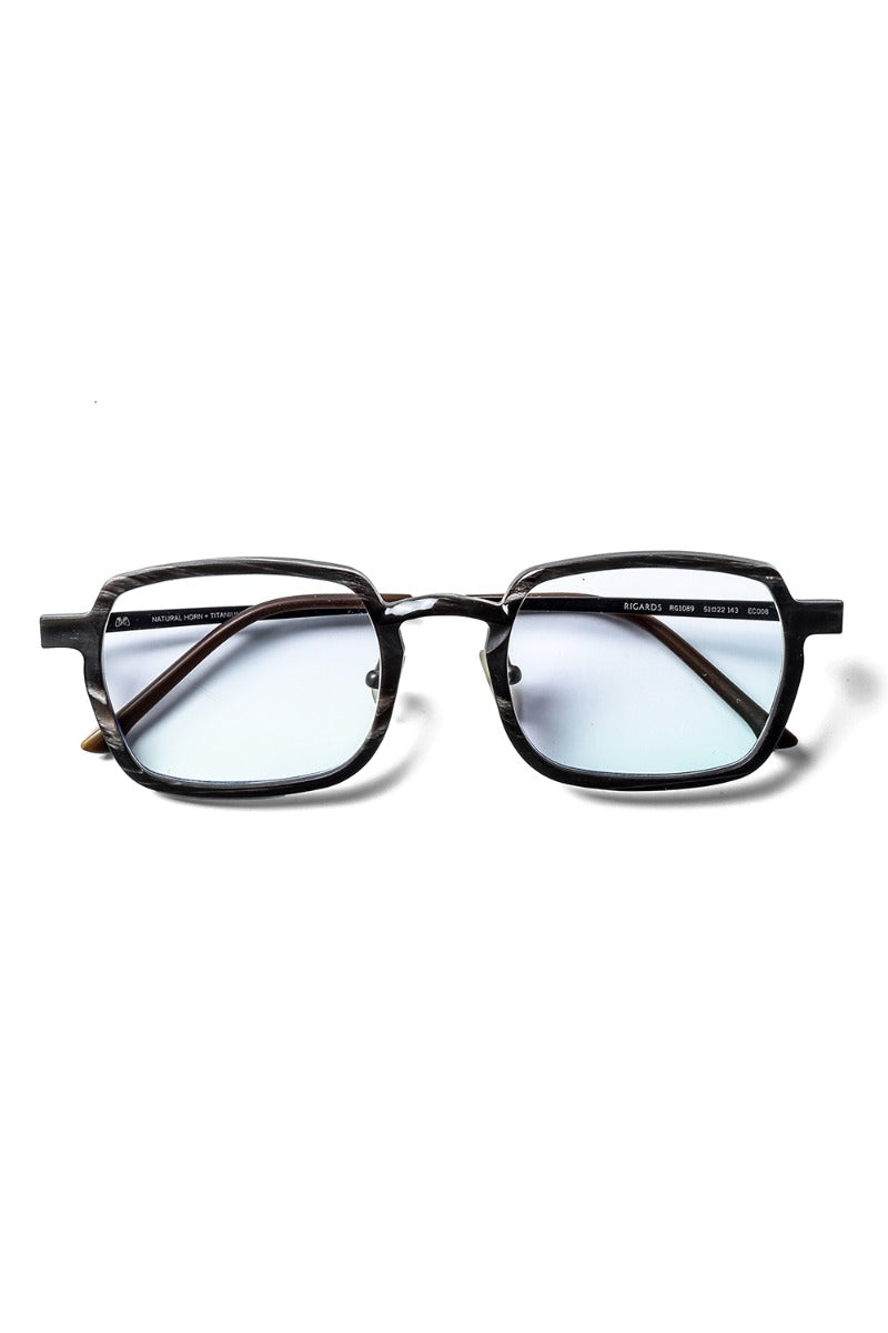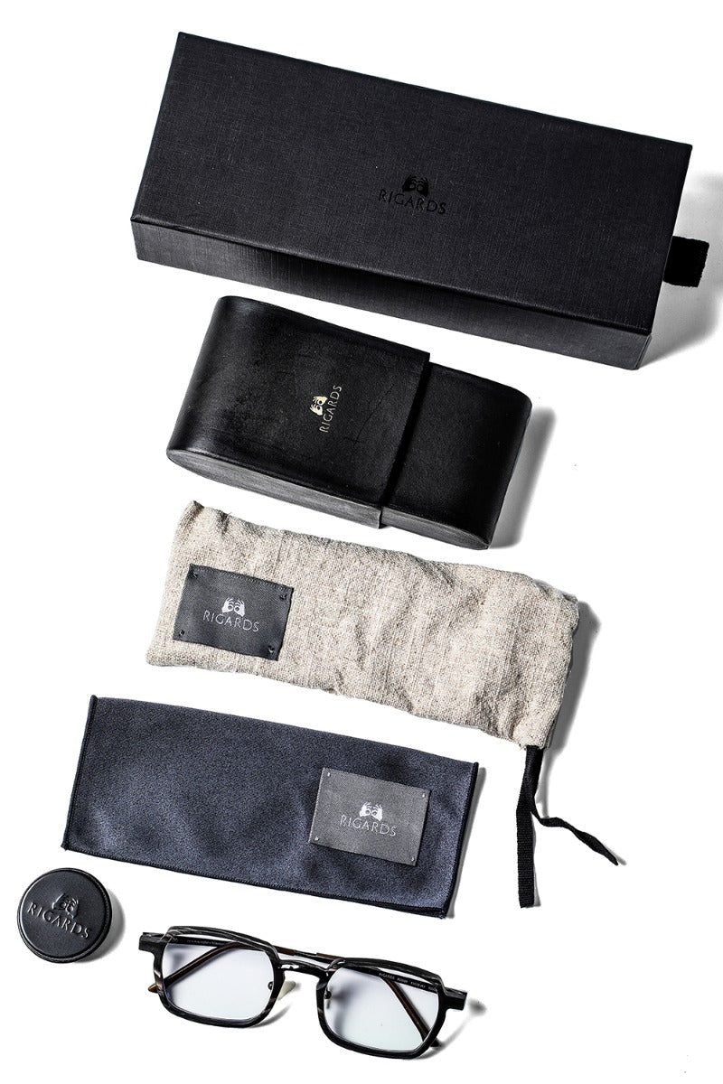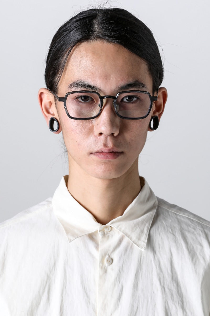 This square-shaped model is rare for the brand, using buffalo horn, the symbolic material of RIGARDS. Depending on the natural material, each horn has a different look depending on the part used. The frame is square but with rounded corners and an edgy design that runs from bridge to rim to end piece, creating a simple yet mature sense of playfulness. The frame color, Uni Black&White, is a complex yet soothing color with white randomly inserted into the black base, and the natural gradation gives the frames a unique and deep taste. In addition, the horn frame gradually loses moisture and dries out, so applying the brand's original oil cream will allow the oil to penetrate the horn and prevent it from drying out. The product comes with a leather case, cloth, and warranty card.
