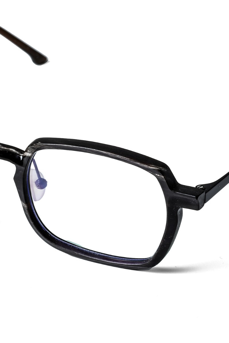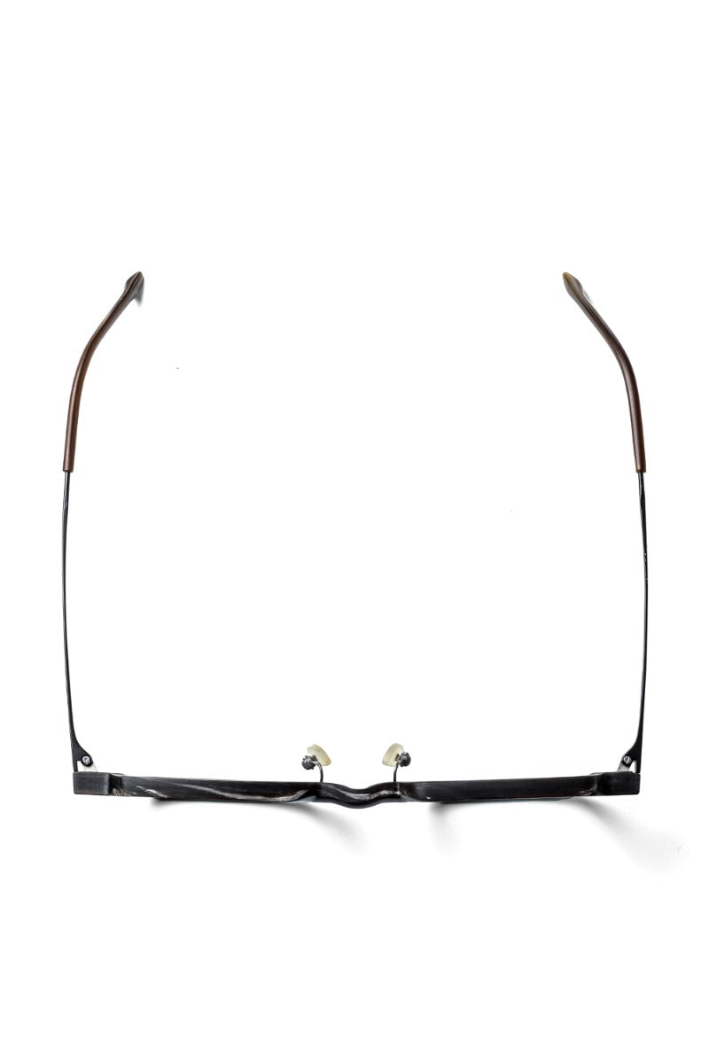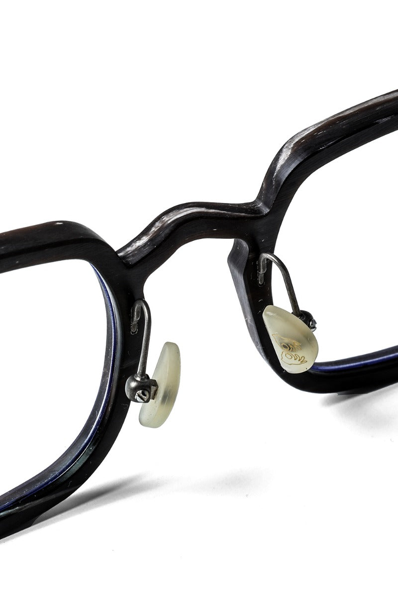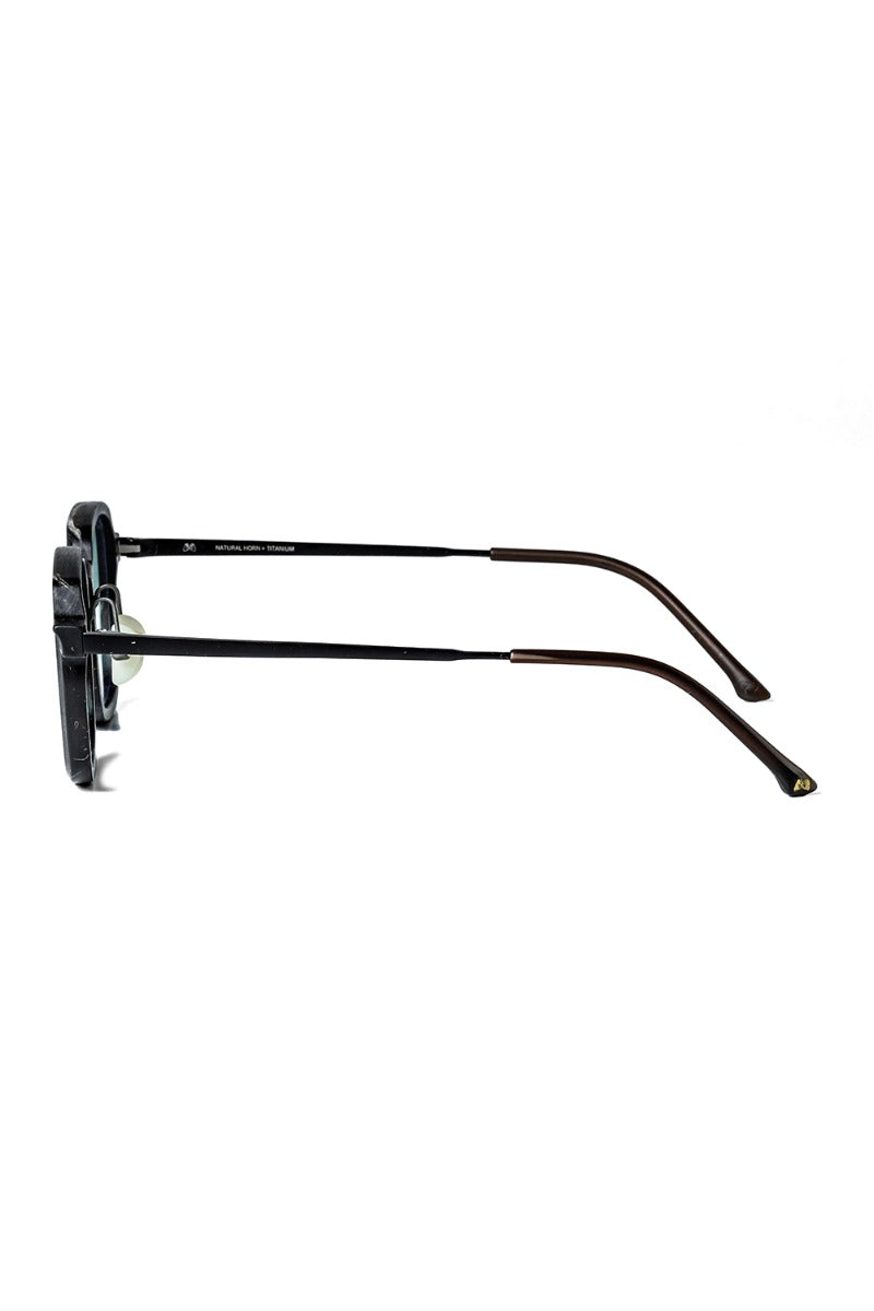 This square-shaped model is rare for the brand, using buffalo horn, the symbolic material of RIGARDS. Depending on the natural material, each horn has a different look depending on the part used. The frame is square but with rounded corners and an edgy design that runs from bridge to rim to end piece, creating a simple yet mature sense of playfulness. The frame color, Uni Black&White, is a complex yet soothing color with white randomly inserted into the black base, and the natural gradation gives the frames a unique and deep taste. In addition, the horn frame gradually loses moisture and dries out, so applying the brand's original oil cream will allow the oil to penetrate the horn and prevent it from drying out. The product comes with a leather case, cloth, and warranty card.