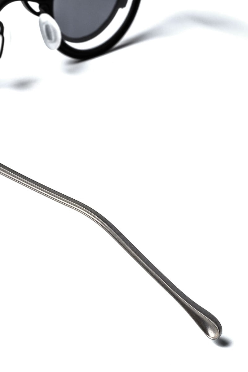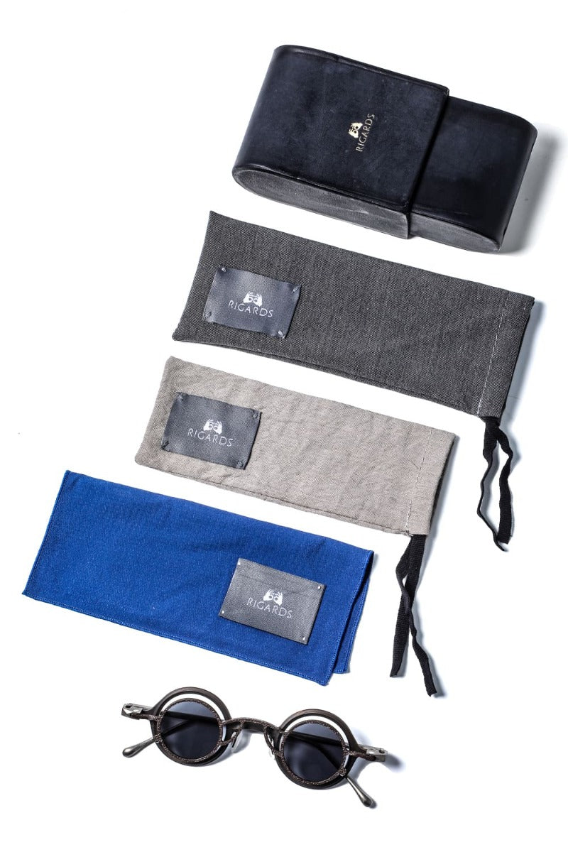 ZIGGY CHEN collaboration product number "Mad Scientist" is one of the most impressive items in the metal frame series of RIGARDS. This is a 2-way clip-on frame with a classical round copper frame that reminds you of antique glasses and a modern image of a layered magnet clip-on design. The frame design that gives the wearer a mysterious look by attaching the clip is now one of the main images of Rigards eyewear. The whole frame is made of titanium, so the expression is more plain than the copper material model, but the weight which is a demerit of the copper frame is reduced, so it is developed as a highly practical model. In addition, the frame of the clip-on section is textured in a bumpy manner, which is exactly opposite to the plain and clean look of the main frame, and you can enjoy the contrast of the texture. The nose pad is made of soft rubber material for a soft feel.