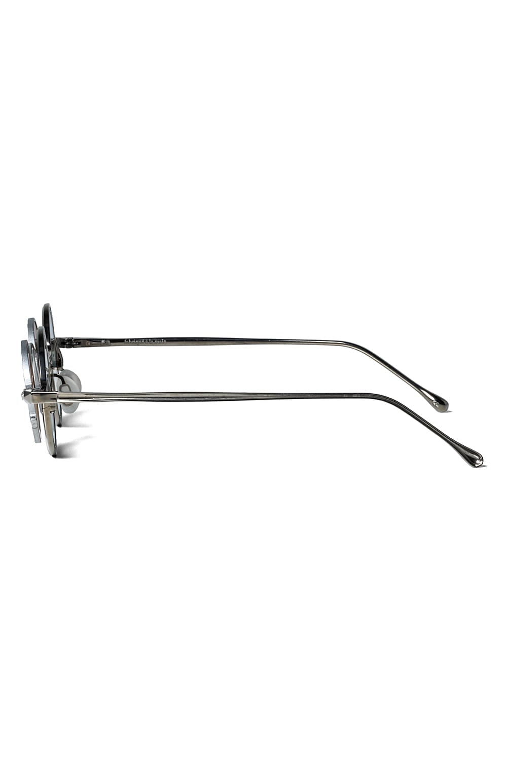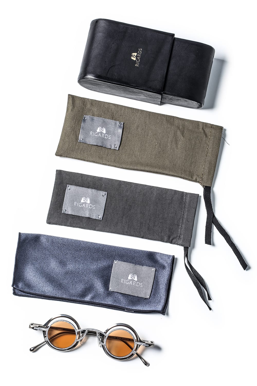 ZIGGY CHEN collaboration product number "Mad Scientist" is one of the most impressive items in the metal frame series of RIGARDS. This is a 2-way clip-on frame with a classical round copper frame that reminds you of antique glasses and a modern image of a layered magnet clip-on design. The frame design that gives the wearer a mysterious look by attaching the clip is now one of the main images of Rigards eyewear. The whole frame is made of titanium, so the expression is more plain than the copper material model, but the weight which is a demerit of the copper frame is reduced, so it is developed as a highly practical model. In addition, the frame of the clip-on section is textured in a bumpy manner, which is exactly opposite to the plain and clean look of the main frame, and you can enjoy the contrast of the texture. The nose pad is made of soft rubber material for a soft feel.