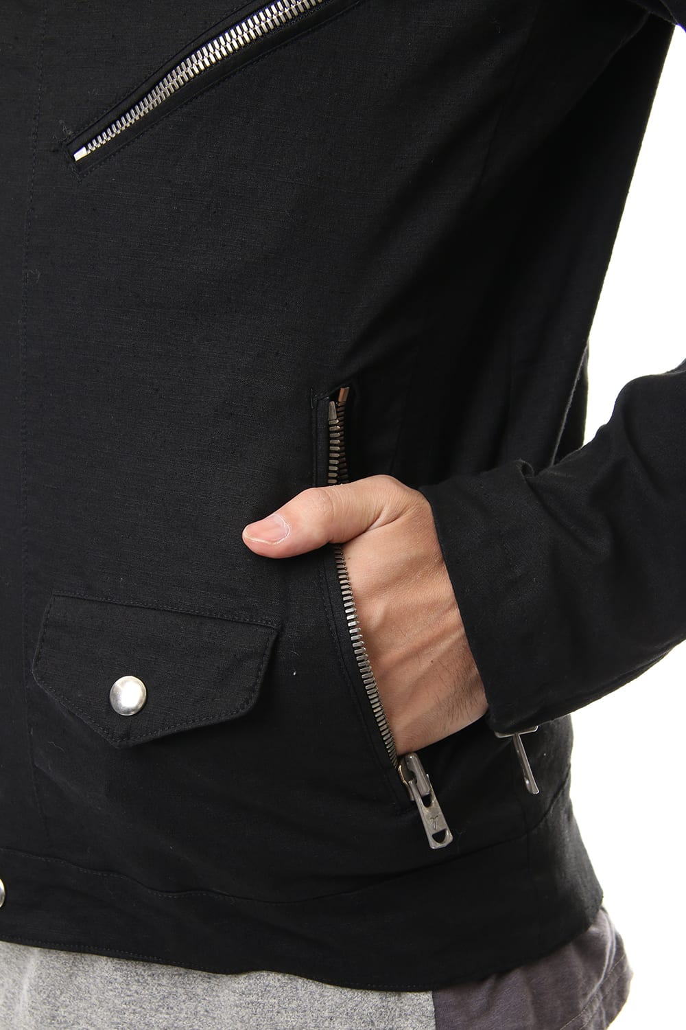 A single double rider's jacket made of cotton and linen stretch fabric, a standard material for spring and summer.