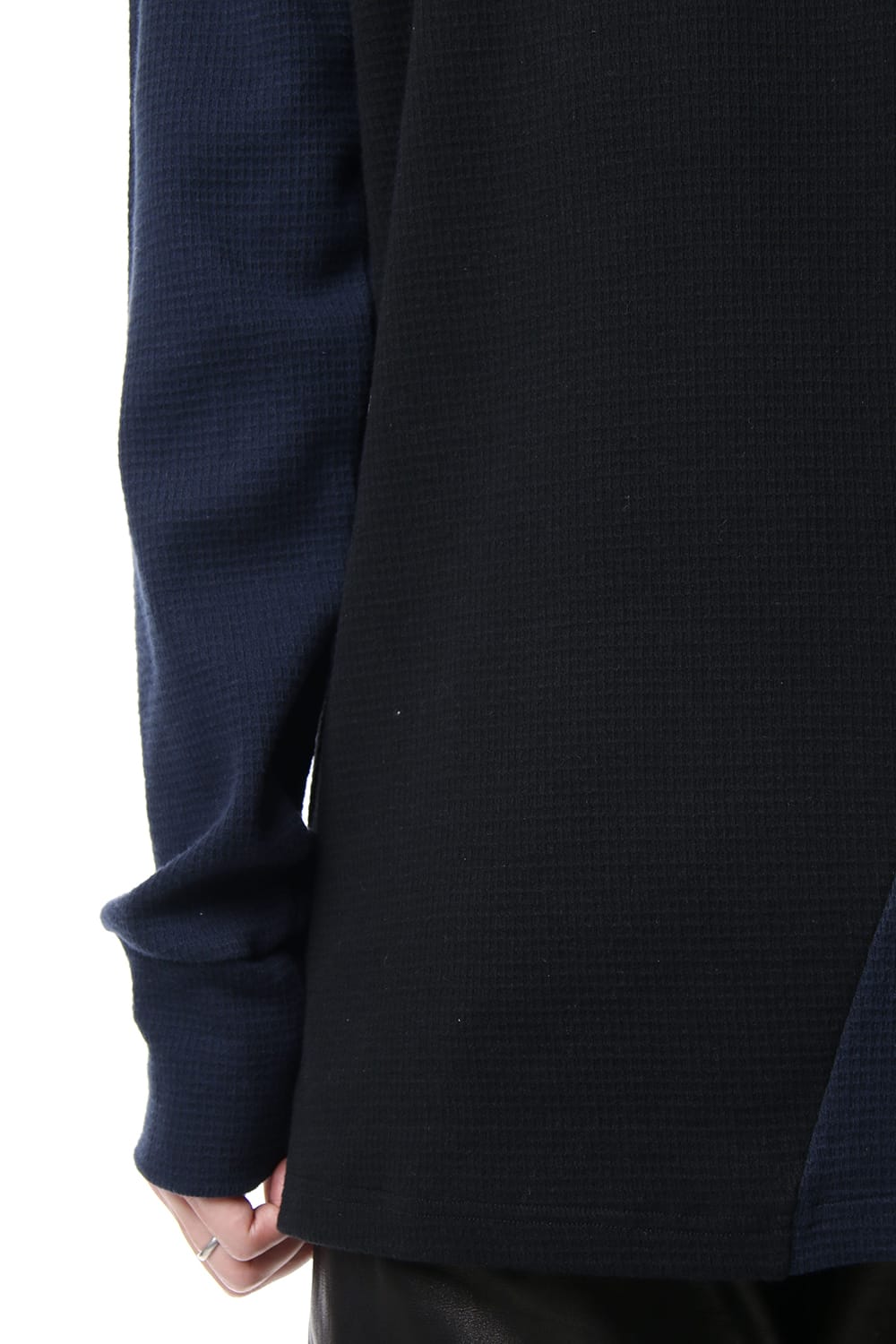 Characterized by a combination of thermal and jersey stitch materials, this item uses a honeycomb structure thermal material.