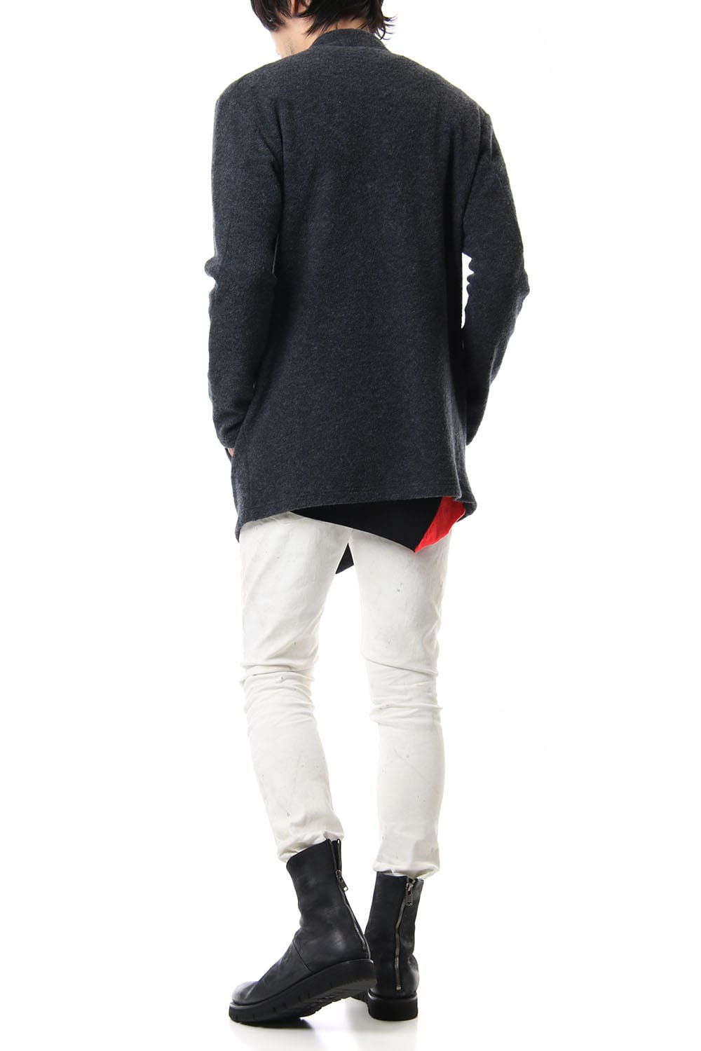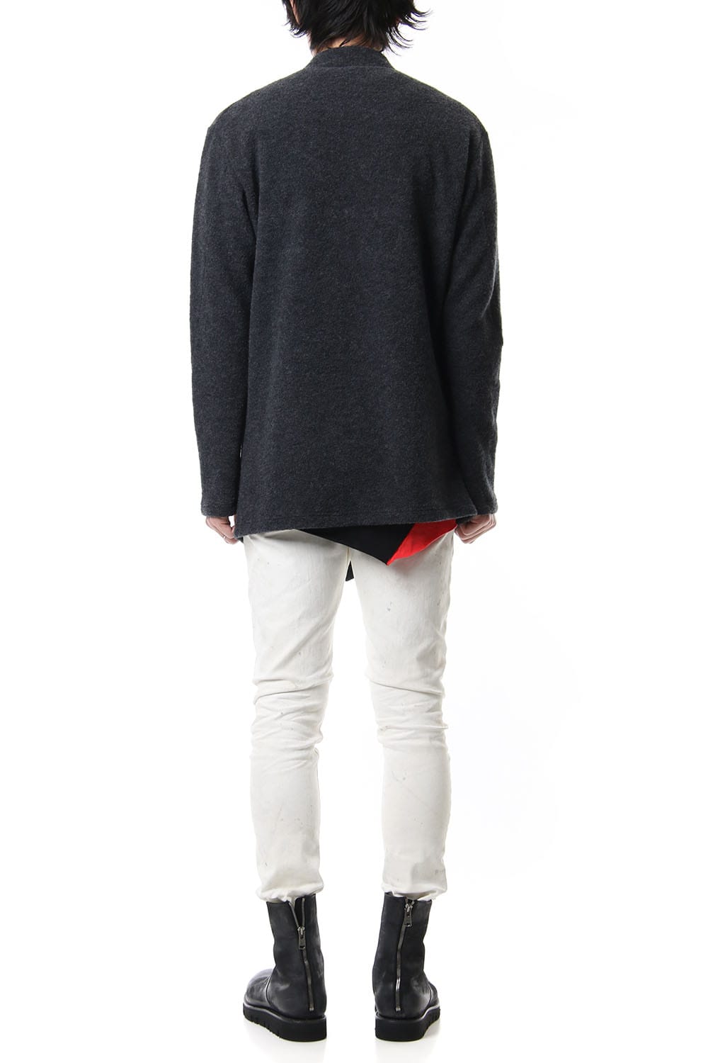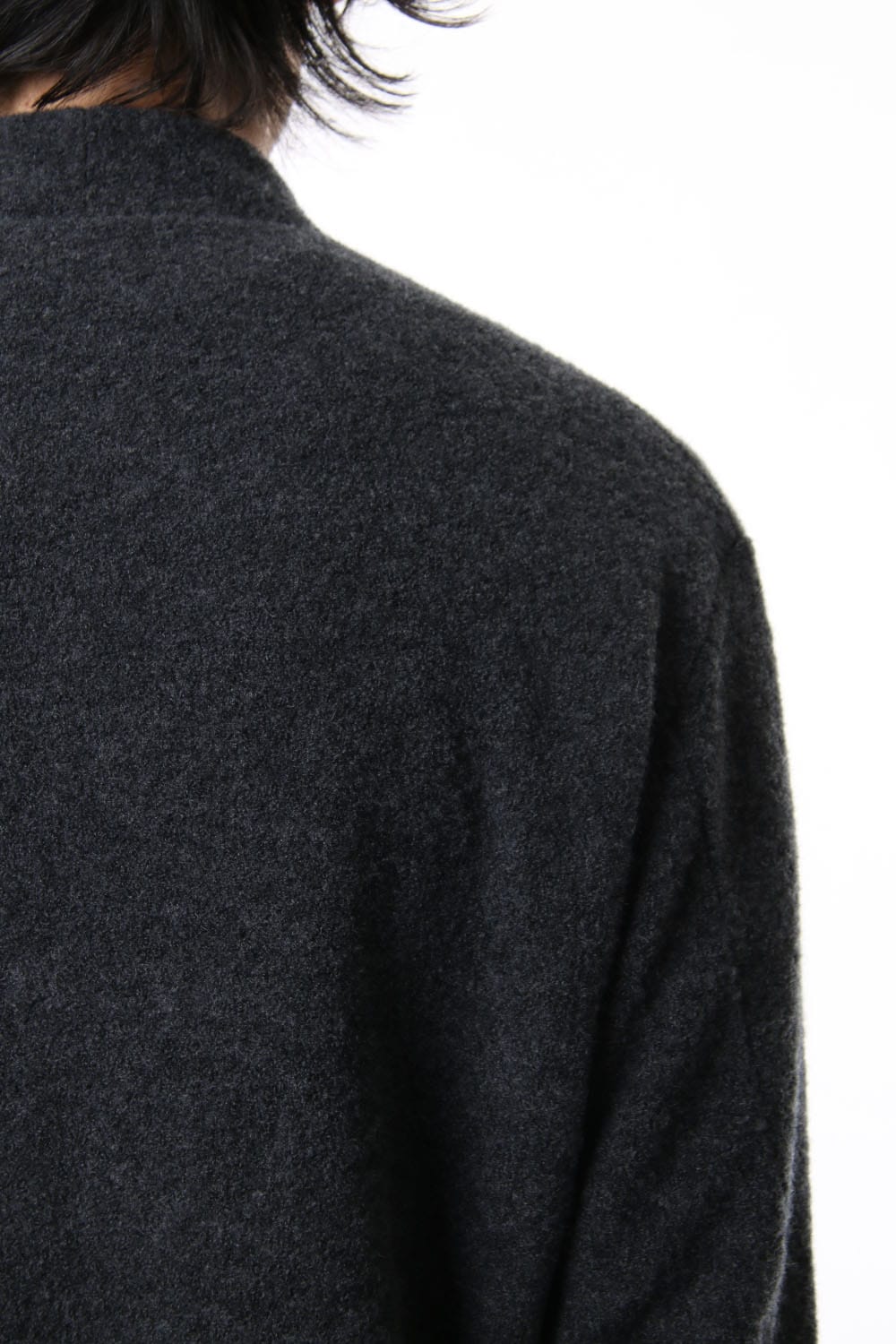 A zippered cardigan made of wool nylon called a wool ring. This boucle fabric is made of soft and durable material with a tumbler finish after dyeing.