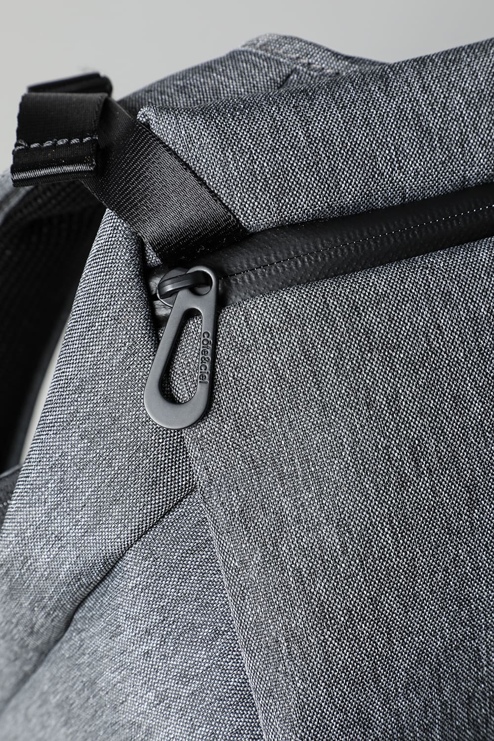 Backpack with 3 storage spaces. The main compartment can hold devices up to 15 inches.
