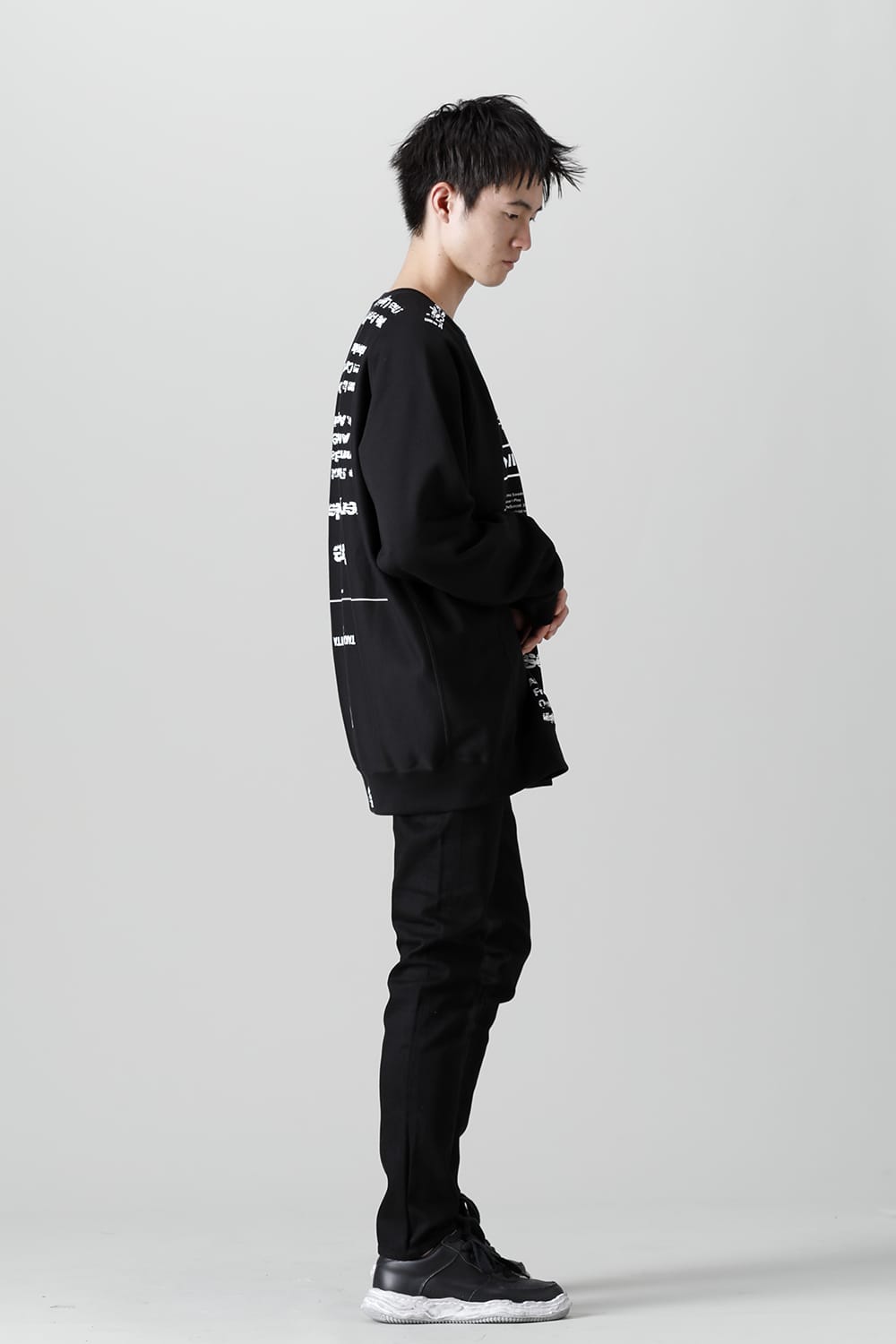 This item is made of smooth cotton sweat fabric and has a relaxed overfit design with wide body and sleeves.