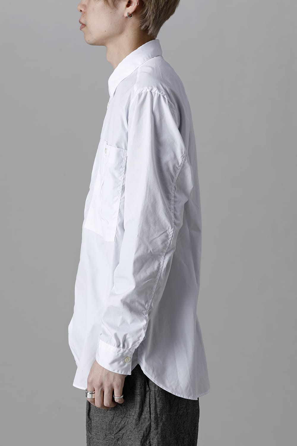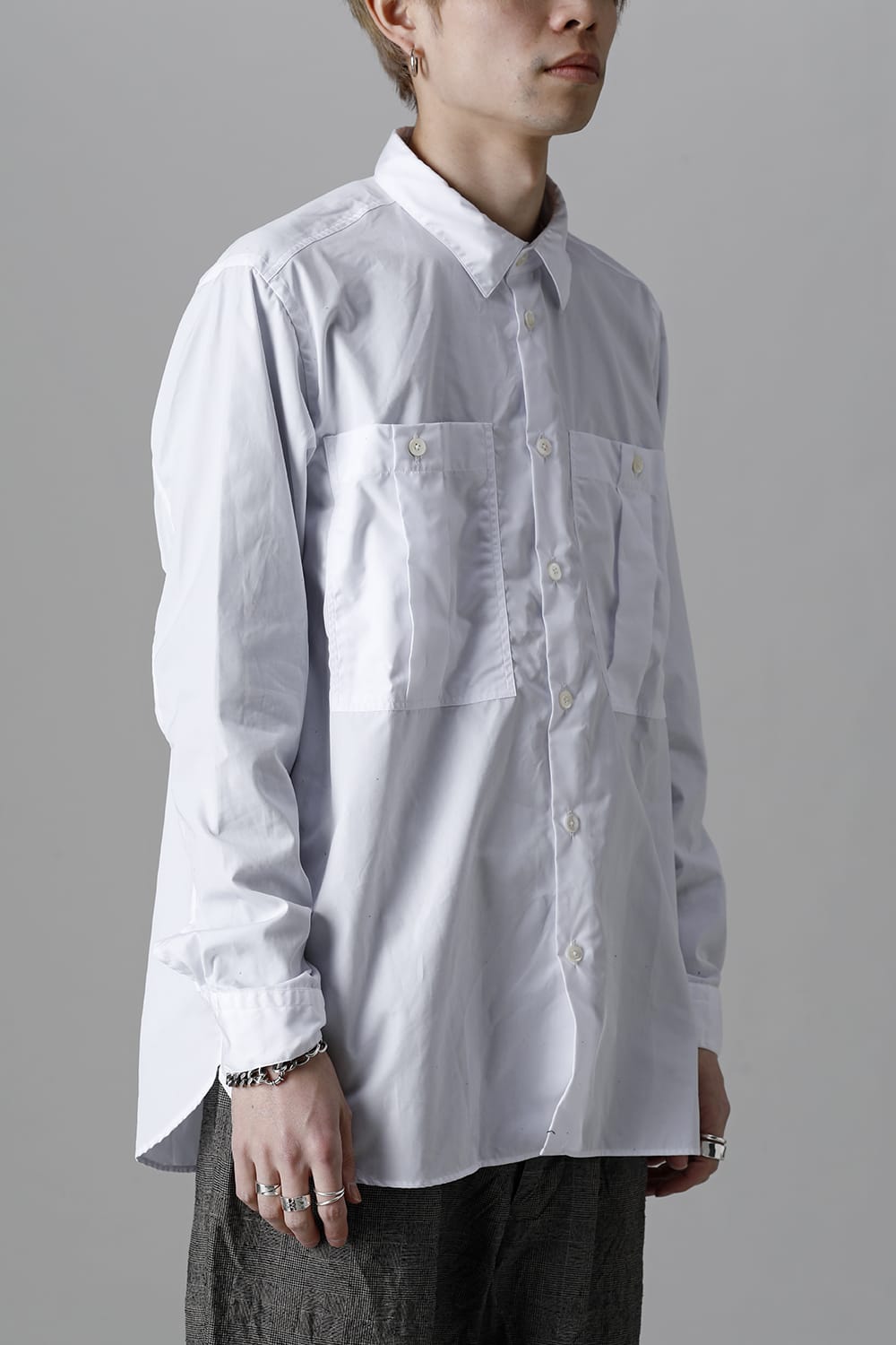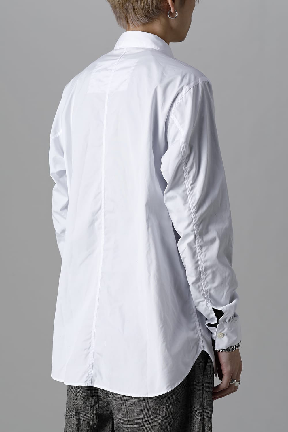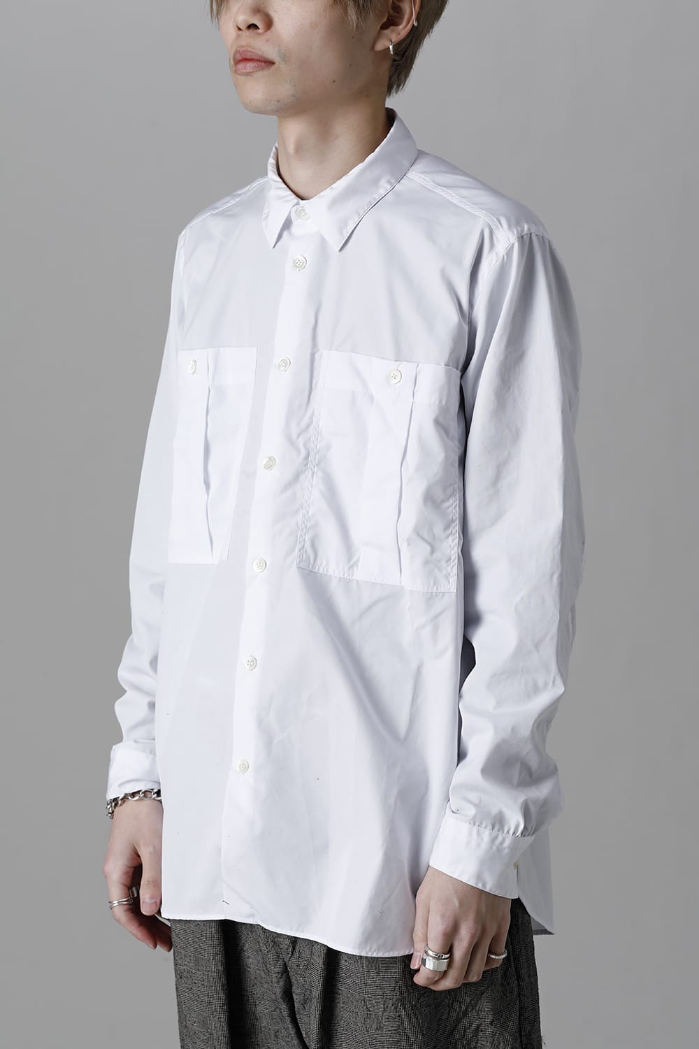 ANNASTESIA exclusive model of Klasica's standard shirt "sh-035", which is not available this season. This is a simple and easy to use shirt with large pockets on both breasts and work shirt details that can be worn casually. The back design, which eliminates the yoke on the shoulder and has a puckering center seam, has a simple yet tasteful appearance. The fabric is broadcloth from Thomas Mason, a world-class mill for shirt fabric. One of the lines is the "Journey" series, which is a fabric that is literally ideal for travel, with strength, sliding, and less wrinkles. Although it has a thickness that is not transparent, it is flexible and gives a relatively soft impression as a Thomas Mason fabric. The washed puckering and loose silhouette is typical of the brand.
