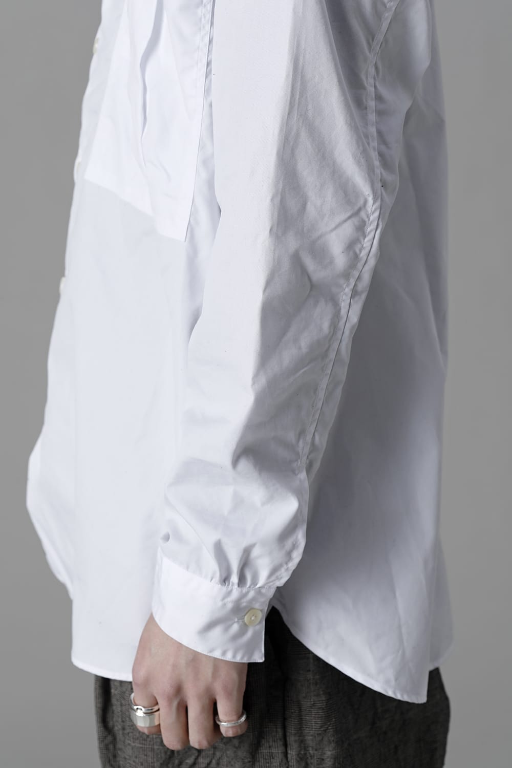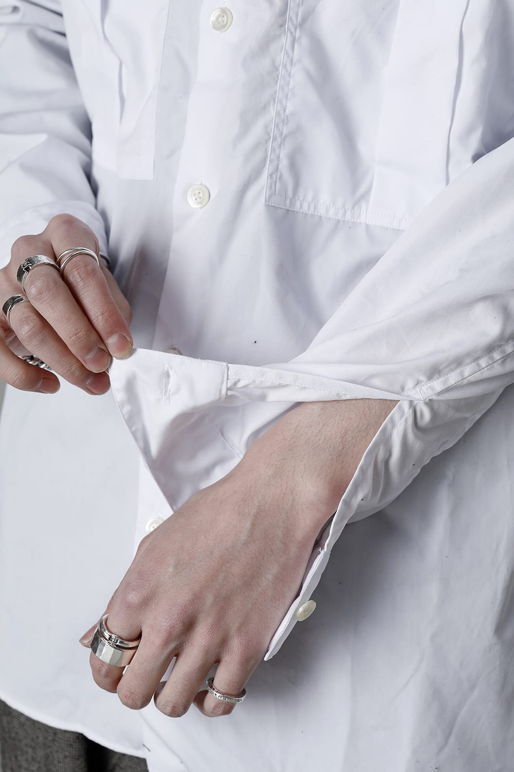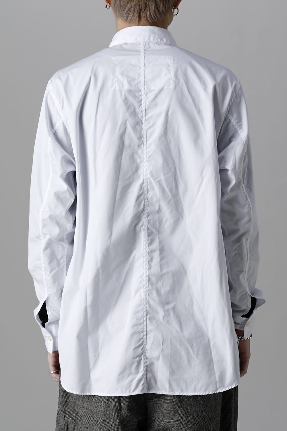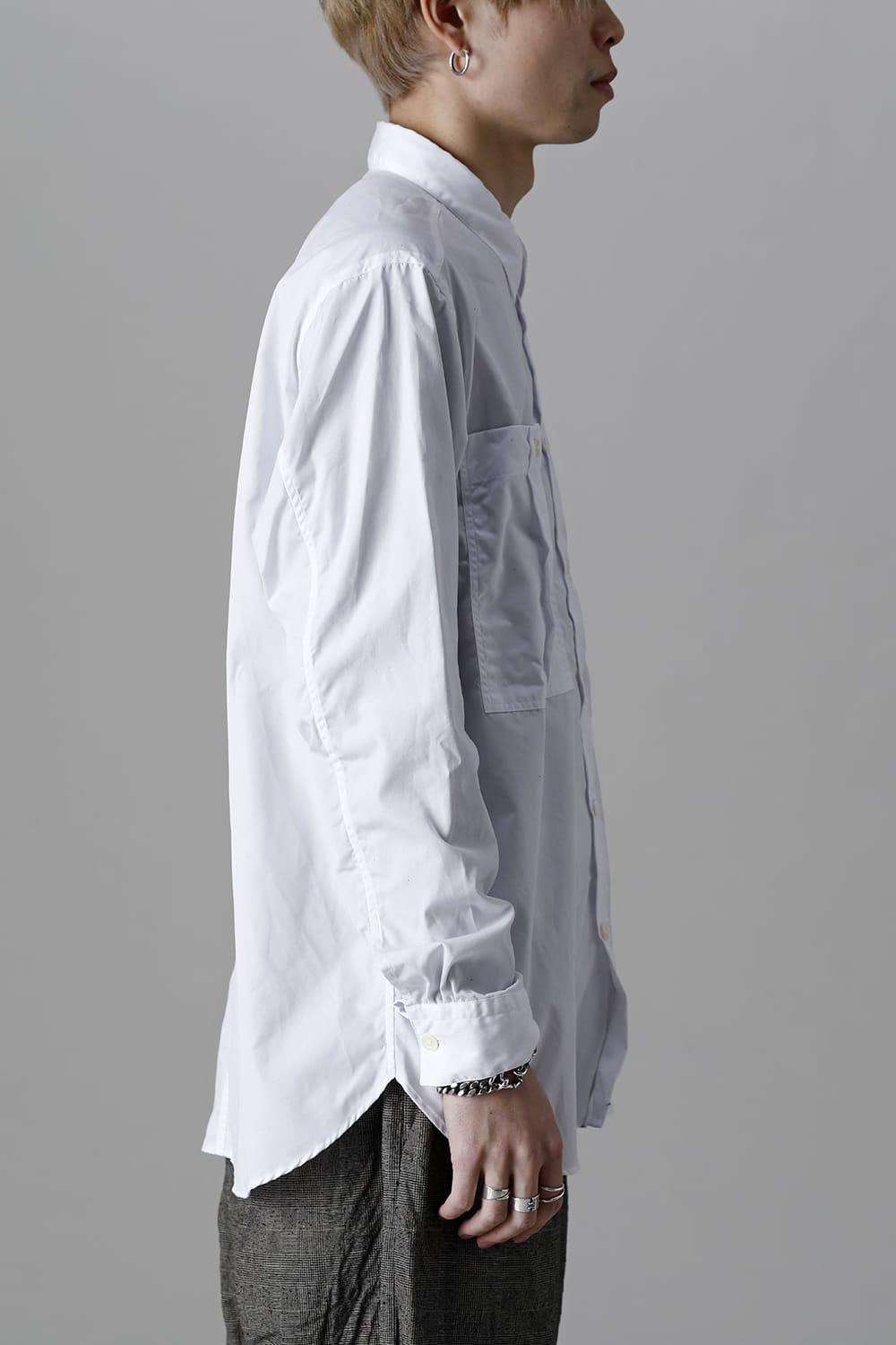 ANNASTESIA exclusive model of Klasica's standard shirt "sh-035", which is not available this season. This is a simple and easy to use shirt with large pockets on both breasts and work shirt details that can be worn casually. The back design, which eliminates the yoke on the shoulder and has a puckering center seam, has a simple yet tasteful appearance. The fabric is broadcloth from Thomas Mason, a world-class mill for shirt fabric. One of the lines is the "Journey" series, which is a fabric that is literally ideal for travel, with strength, sliding, and less wrinkles. Although it has a thickness that is not transparent, it is flexible and gives a relatively soft impression as a Thomas Mason fabric. The washed puckering and loose silhouette is typical of the brand.