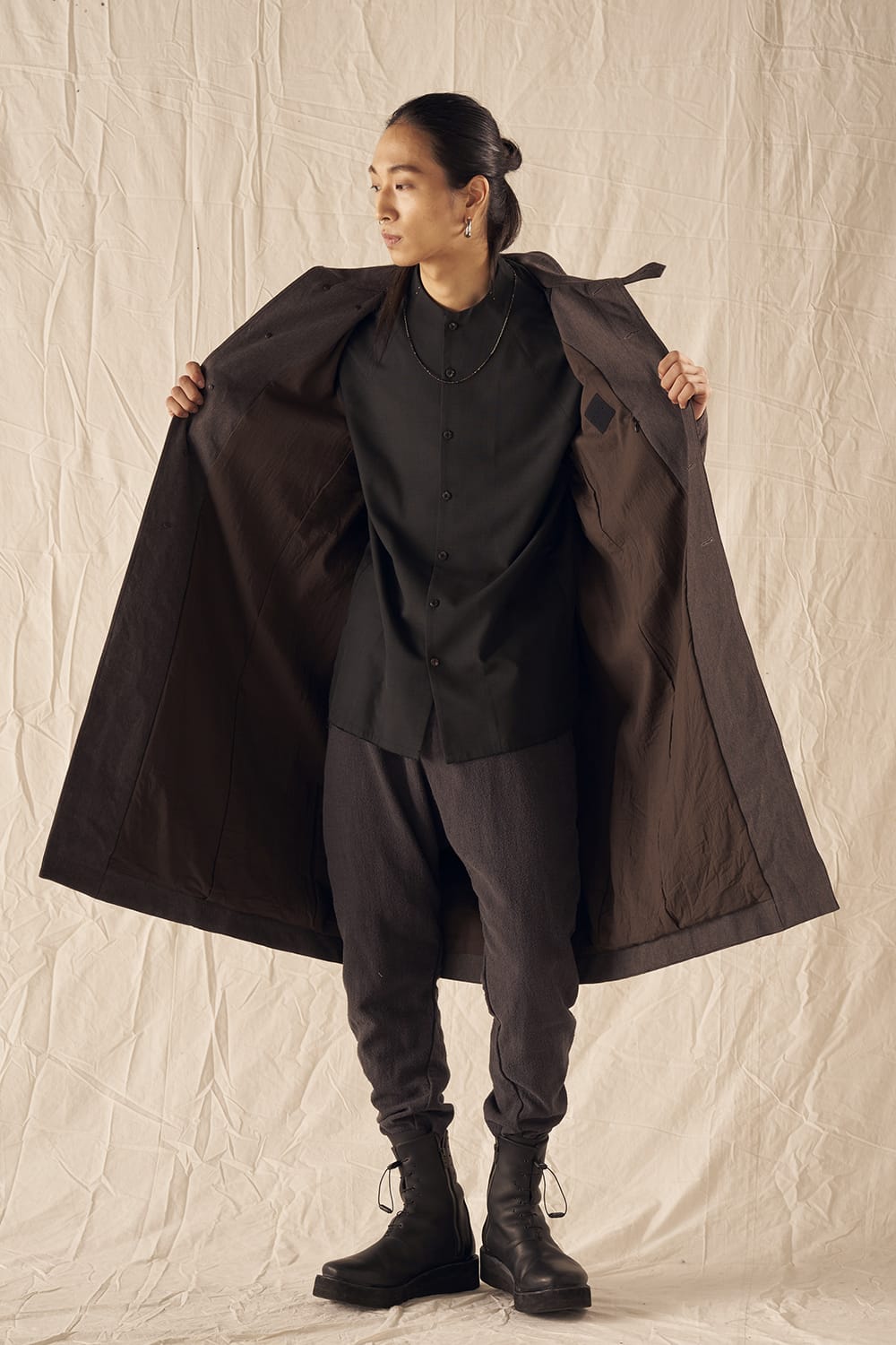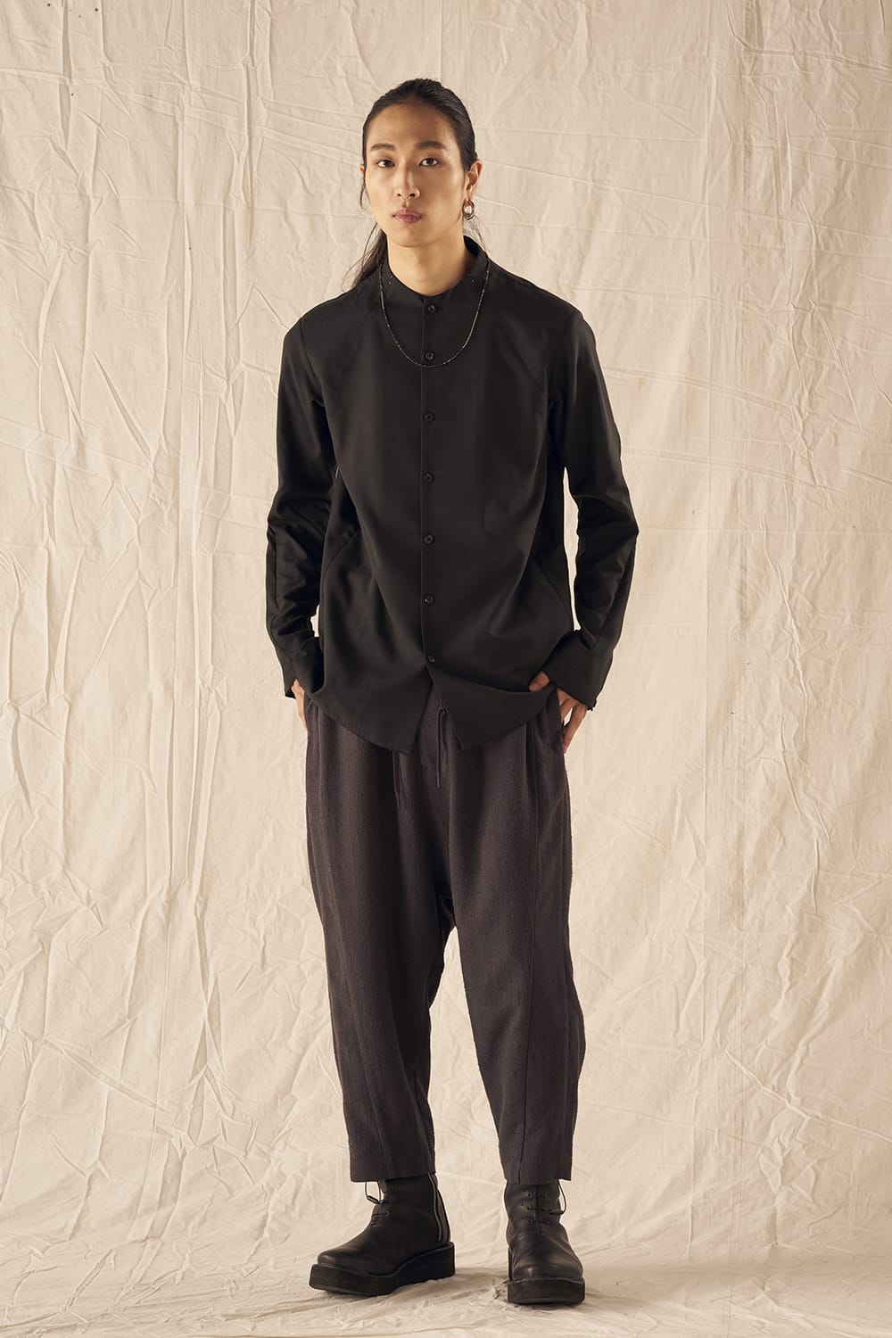 The silhouette is roomy in feel but clean in appearance.