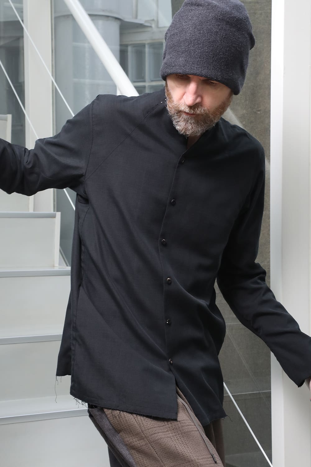 The fabric is made from original silk and cotton, and sandblasted to minimize the luster of the silk.