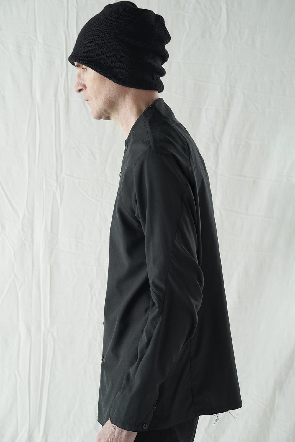 The neck is hand-stitched, and the neck, sleeves, and hem are cut off.