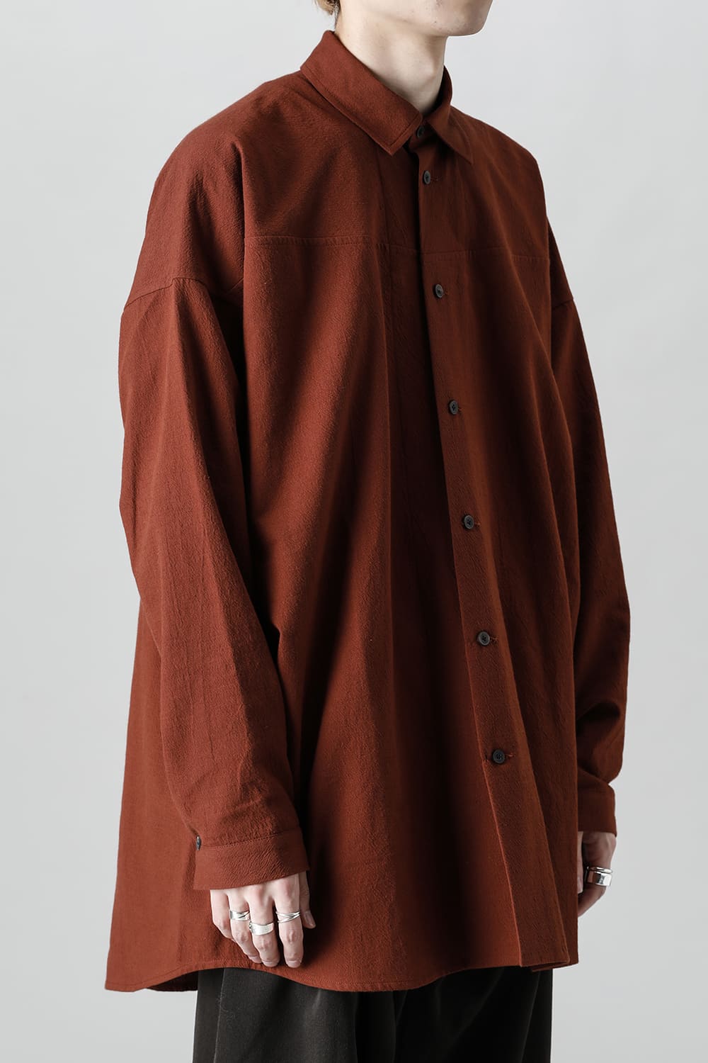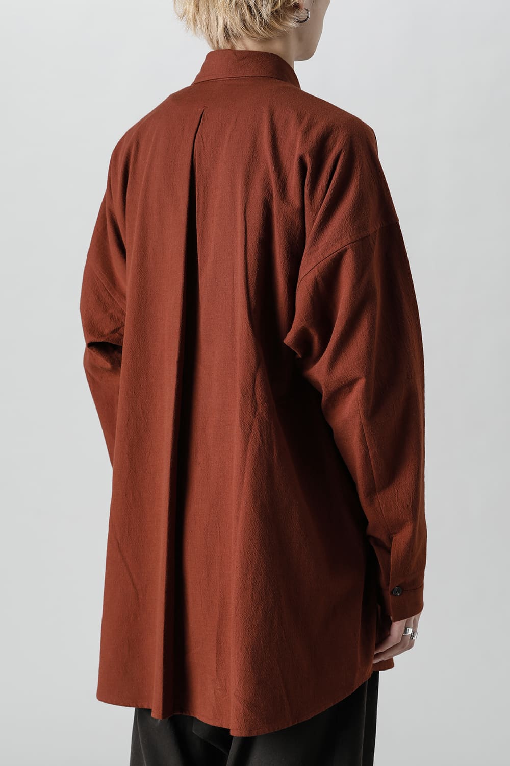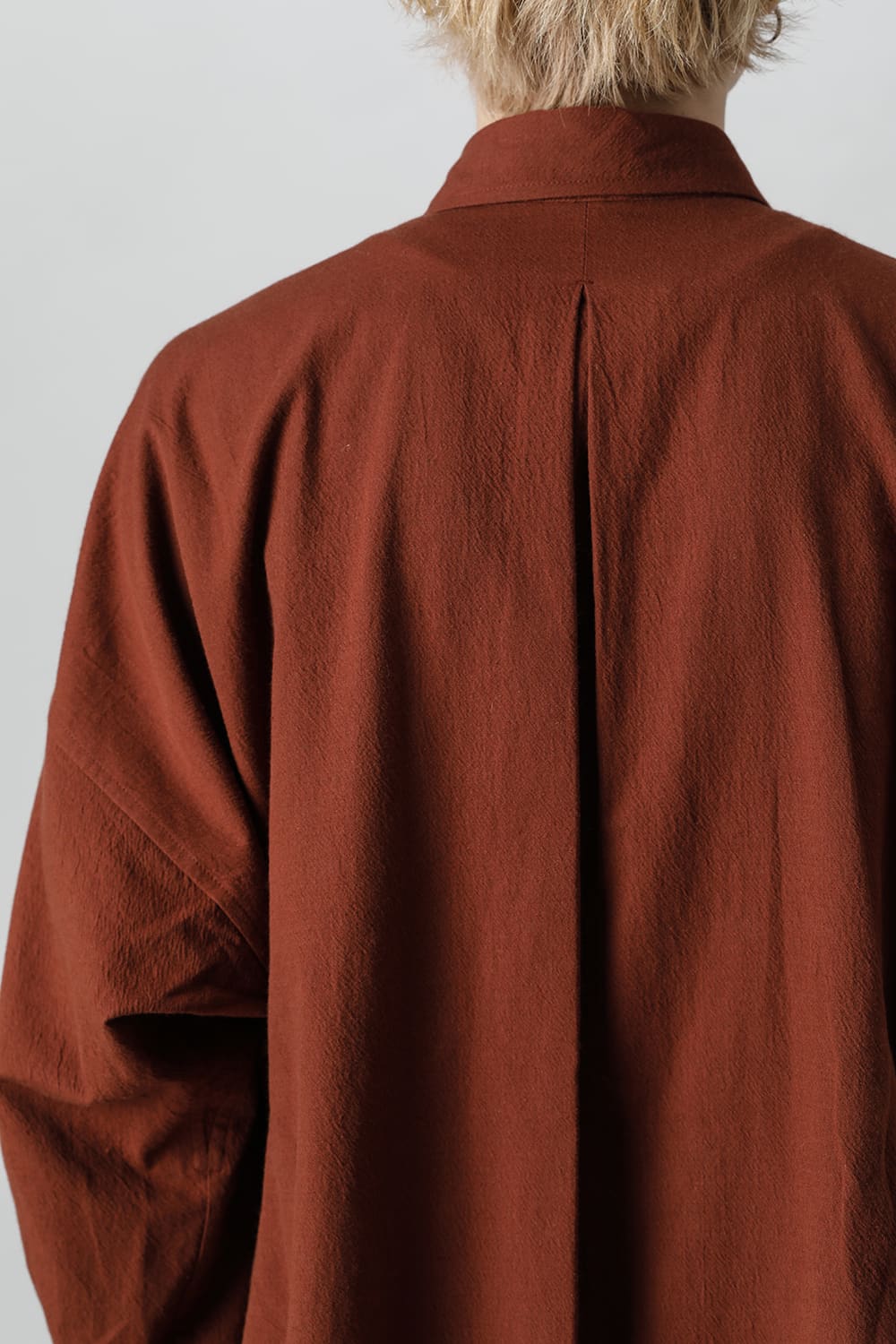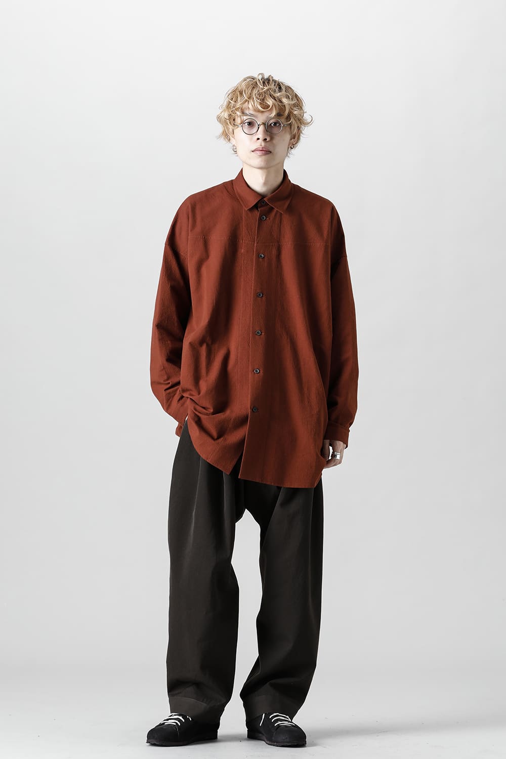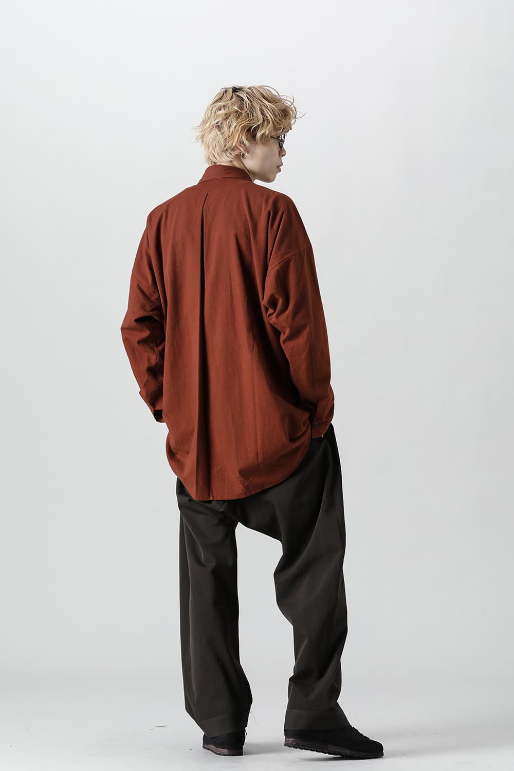 A regular collar shirt with a wide fit silhouette, which is a standard item of JAN-JAN VAN ESSCHE. This season, the pattern has been slightly improved. The sleeves, which used to be taken from the body in a one-piece dress pattern, are made of a different fabric. The tucks on the back of the body have been changed to a shirt that strongly incorporates the elements of a classic western style shirt. This item is made of cotton and yak flannel fabric which has a fine density and does not give you a napping or thick feel.