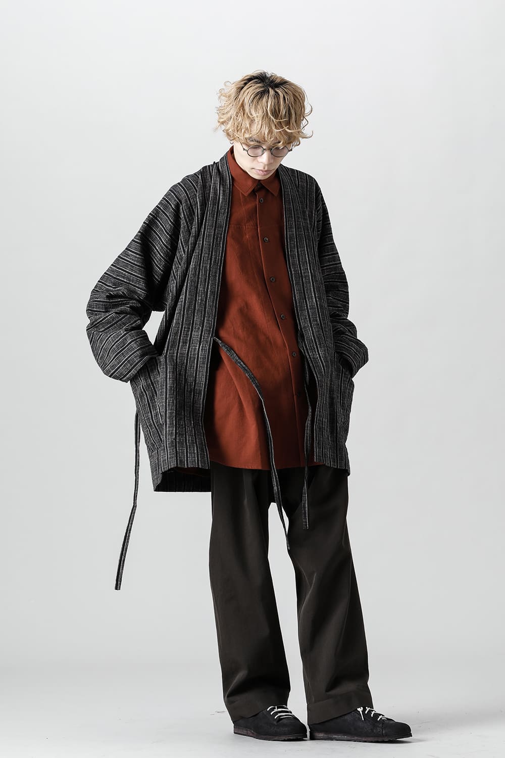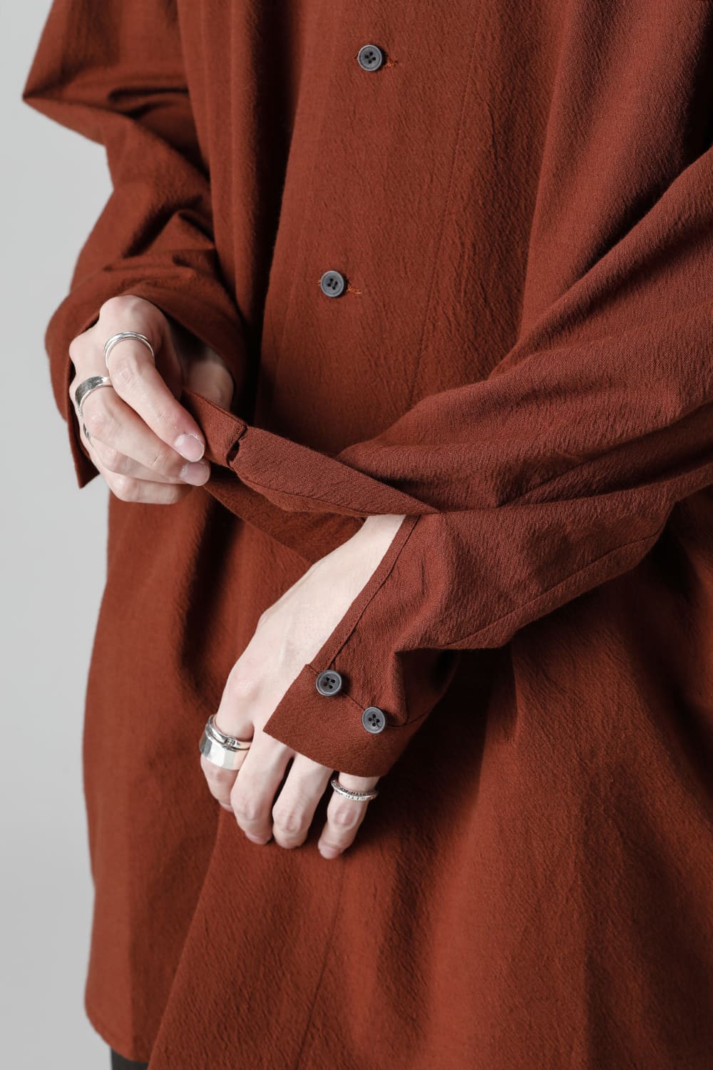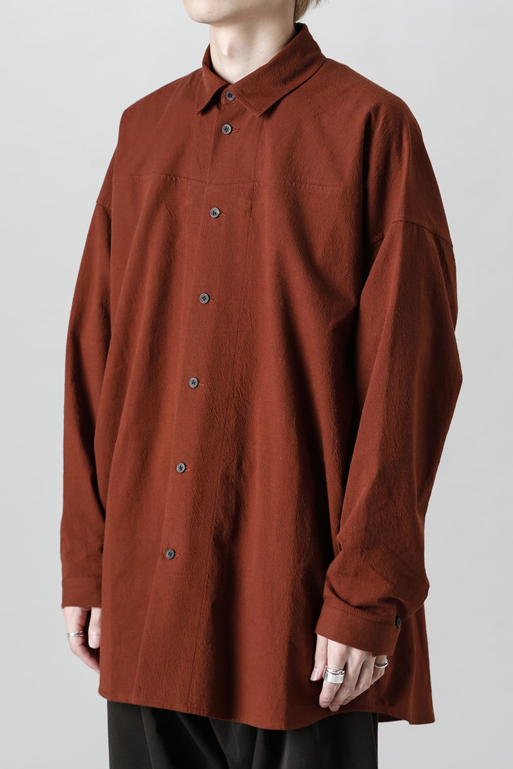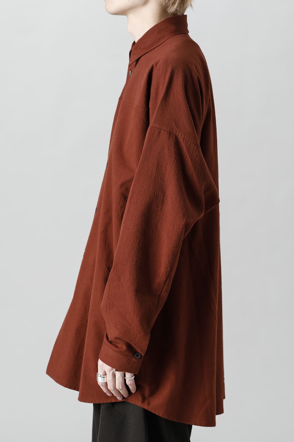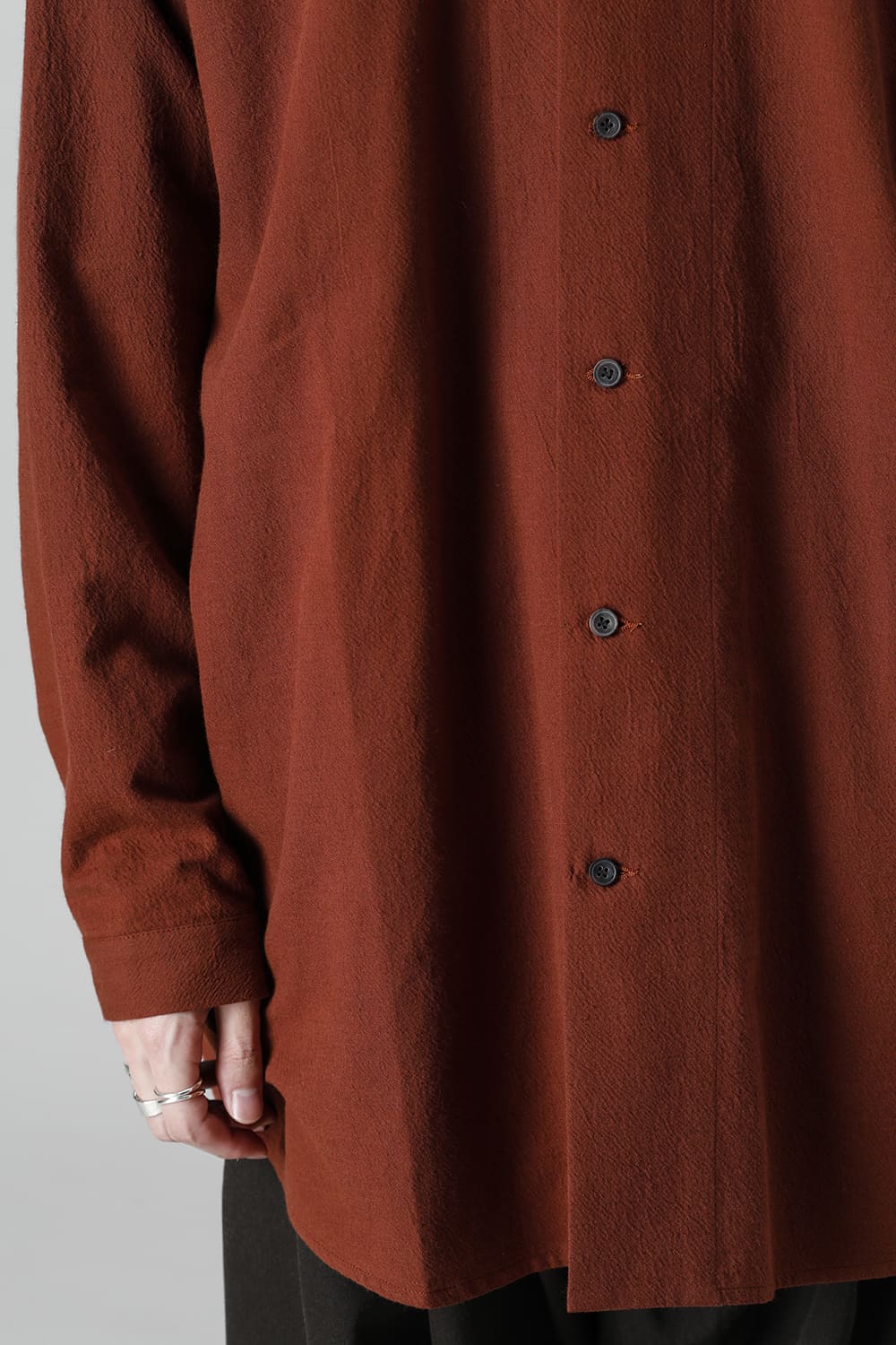 A regular collar shirt with a wide fit silhouette, which is a standard item of JAN-JAN VAN ESSCHE. This season, the pattern has been slightly improved. The sleeves, which used to be taken from the body in a one-piece dress pattern, are made of a different fabric. The tucks on the back of the body have been changed to a shirt that strongly incorporates the elements of a classic western style shirt. This item is made of cotton and yak flannel fabric which has a fine density and does not give you a napping or thick feel.