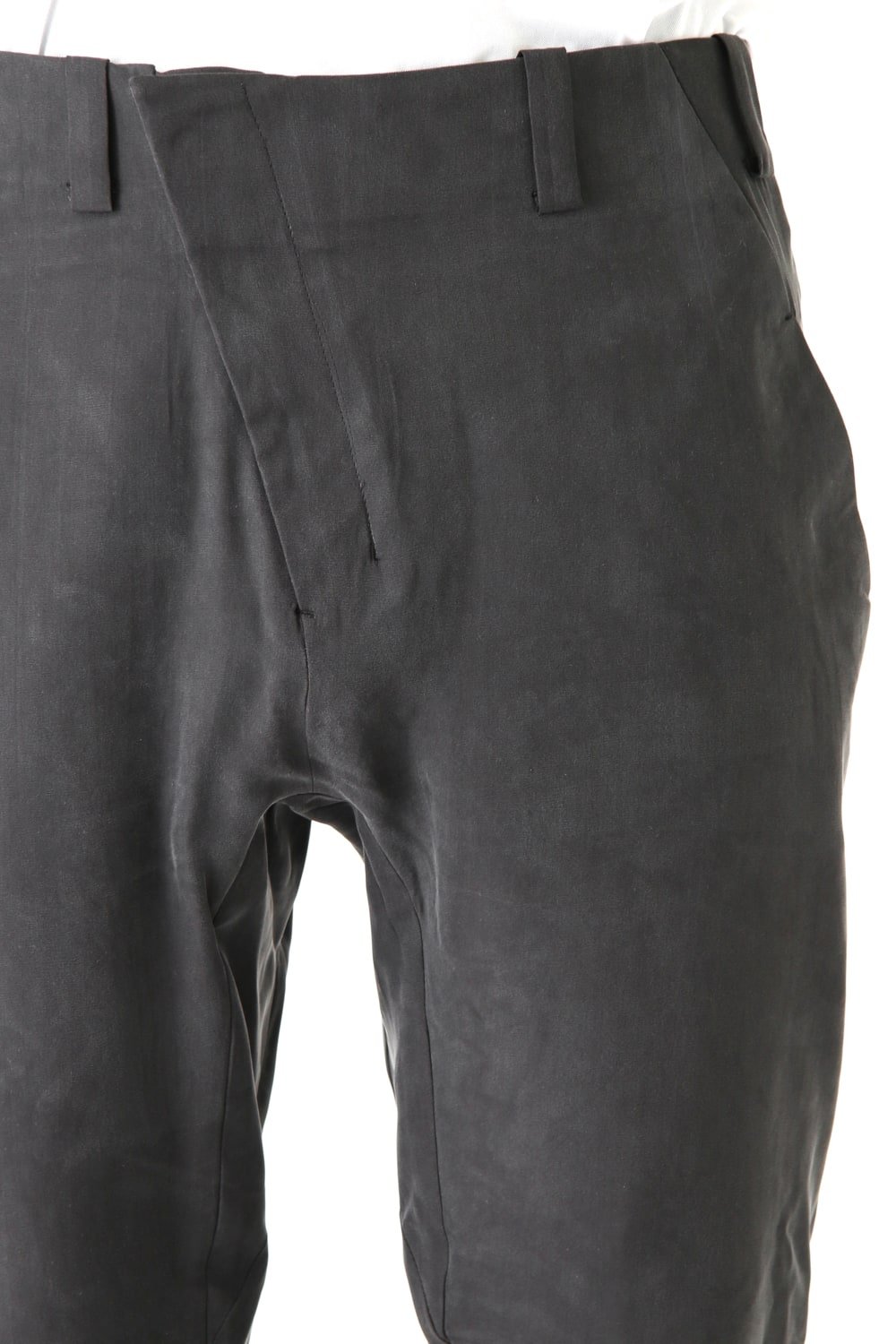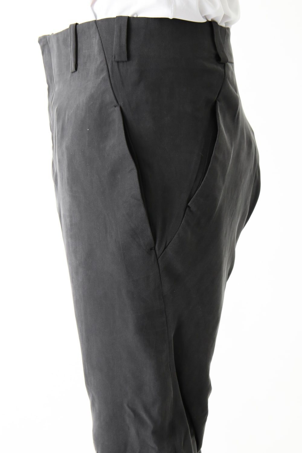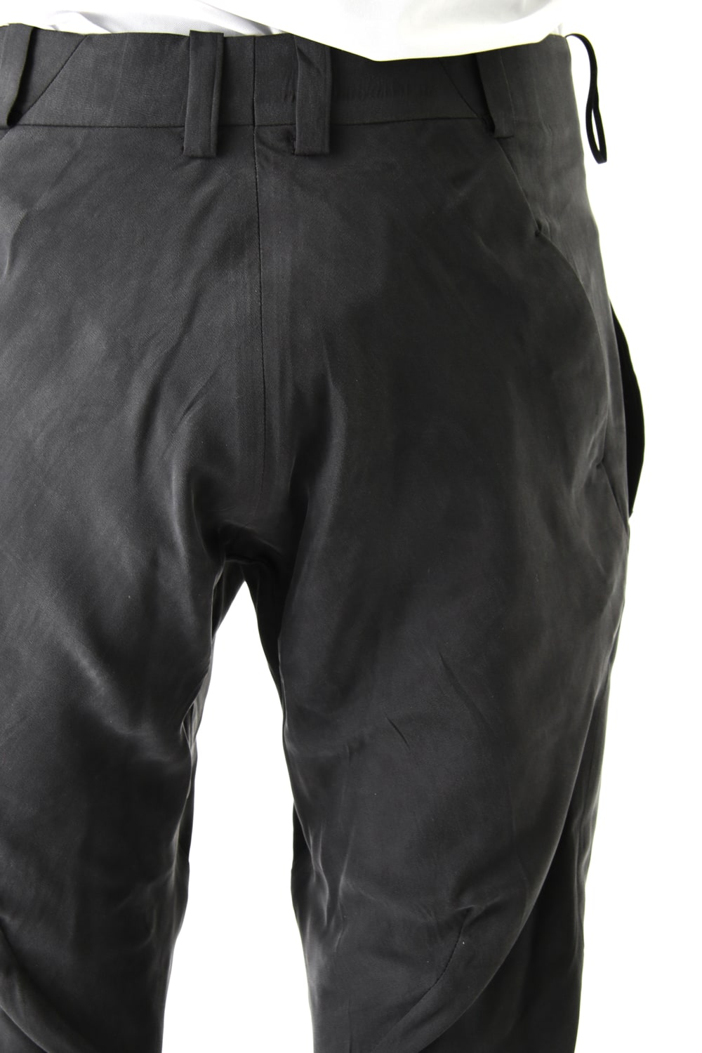 These FASCINATE bespoke slim pants is made with fabric by Italian company OLMETEX. It is made of 100% silk fabric and features a dull luster. It has a natural high moisture permeability and expressive texture like mole skin.