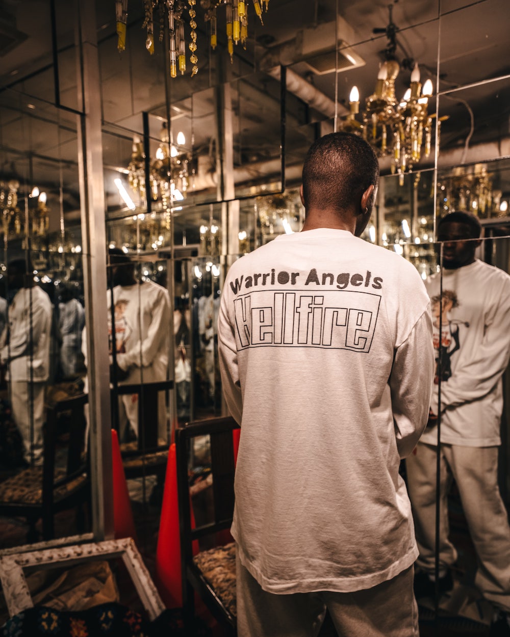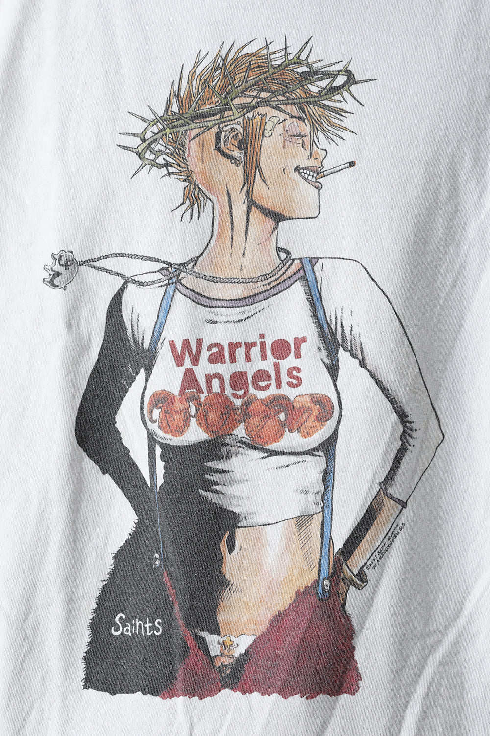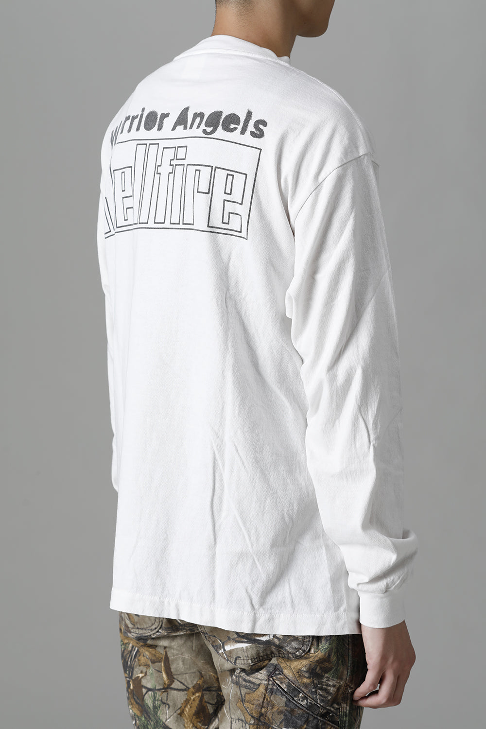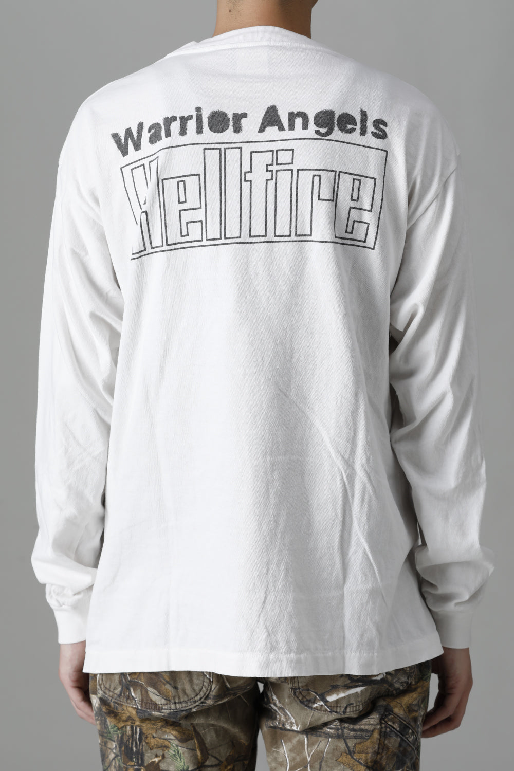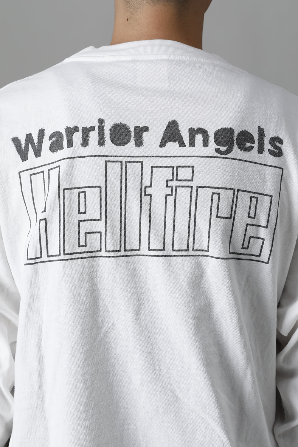 The back is printed with the words "Warrior Angels" and "Hellfire", and it has a burning hot message.