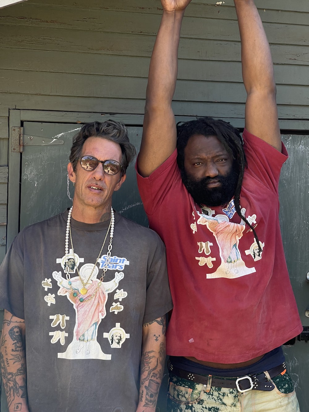 This is a collaboration item between SAINT MICHAEL and DENIM TEARS.