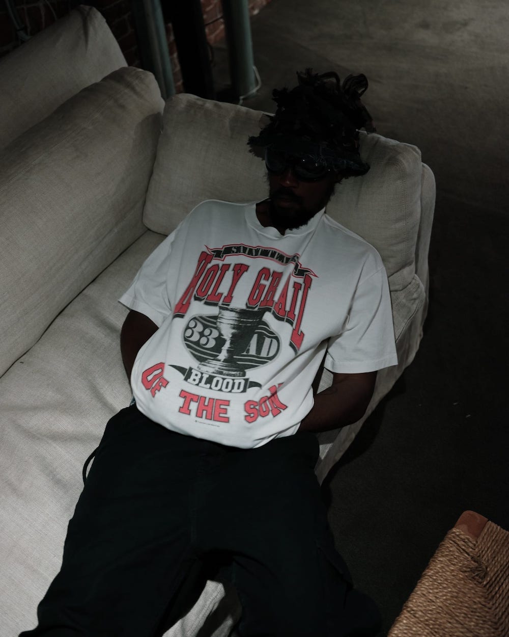 This is a collaboration item between SAINT MICHAEL and DENIM TEARS.