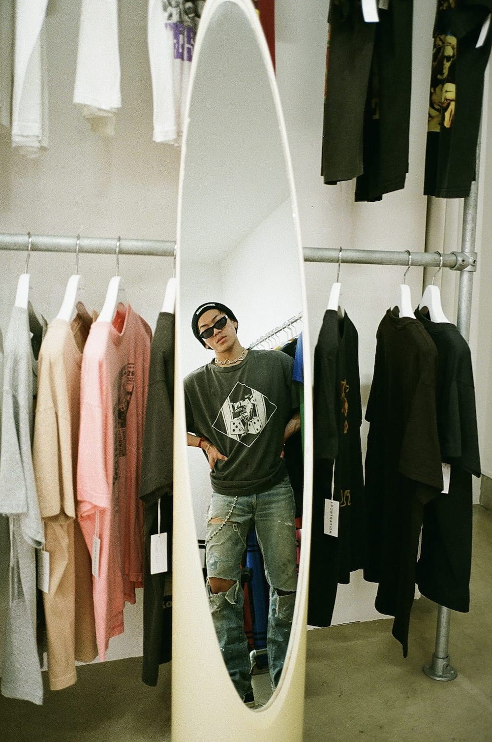 The sewing part is finished with single stitching, which is often seen on vintage T-shirts.