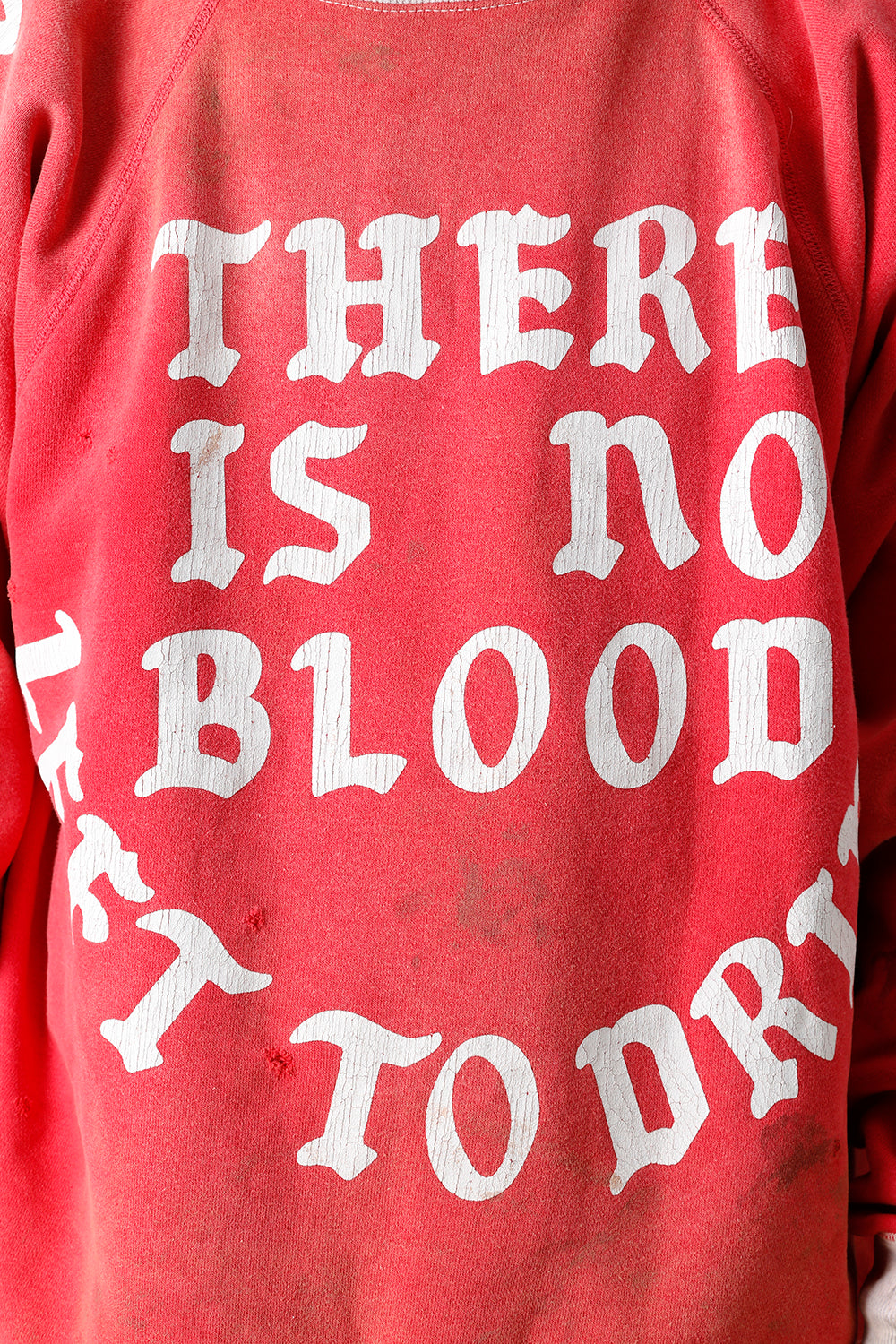"THERE IS NO BLOOD" and "LEFT TO DRINK" are printed on the front and "SAINT" on the back.