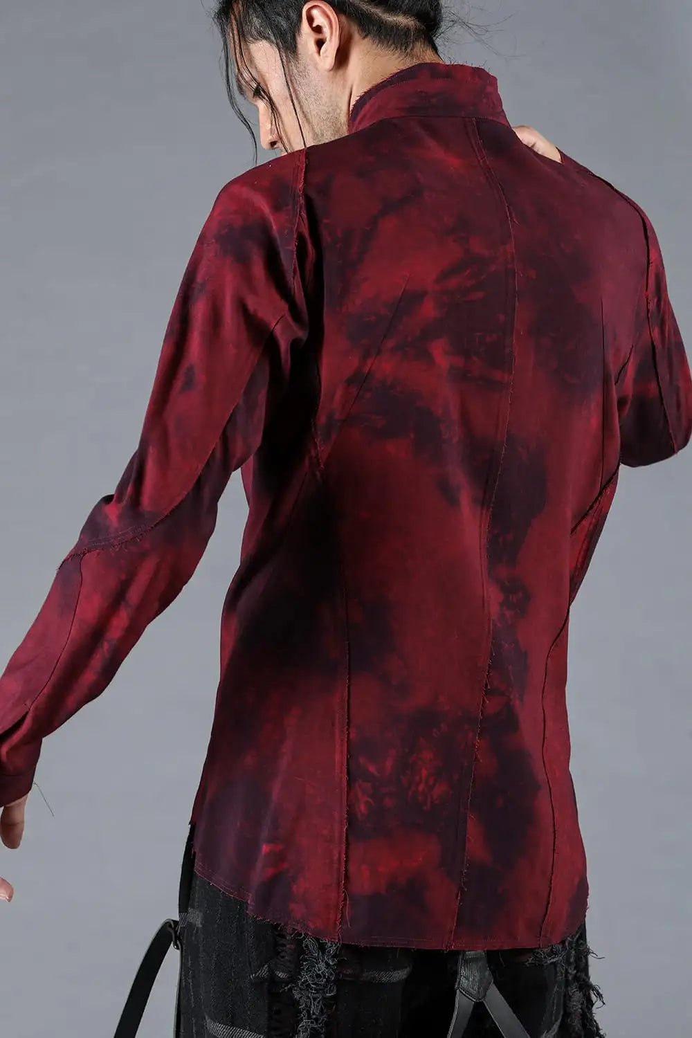 Rayon Twill Cut-Off Band Collar Shirt Red