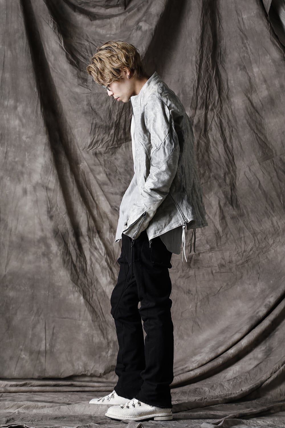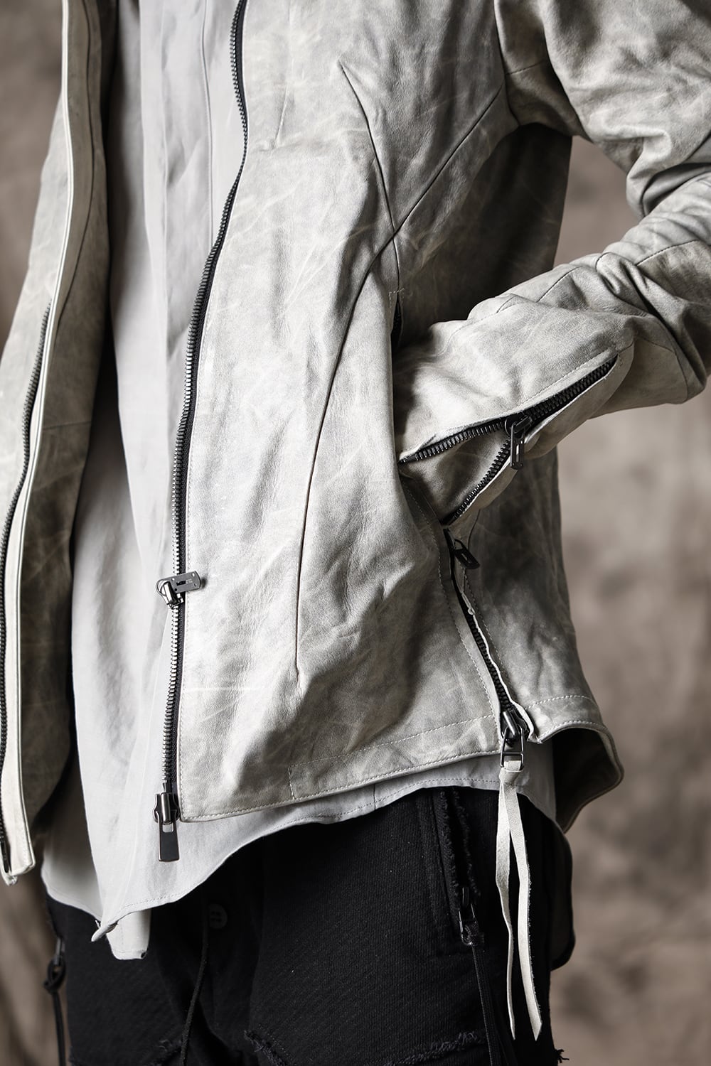 Limited Horse Leather High-Neck Jacket Concrete